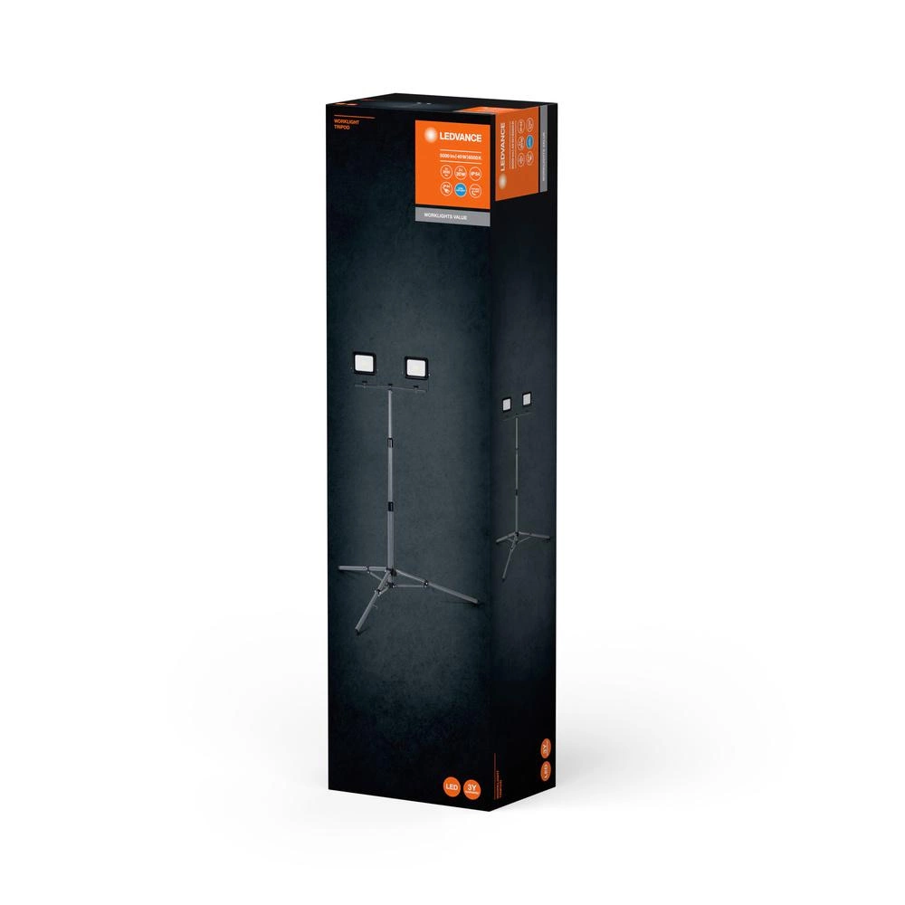 Der LED-Flutlichtstrahler auf einem Stativ ist die ideale Lösung für anspruchsvolle Anwender, die eine robuste Arbeitsbeleuchtung suchen. Ausgestattet mit zwei 40W-Lampen erzeugt er einen starken Lichtstrom von 4000lm für eine hervorragende Sichtbarkeit unter allen Bedingungen. Mit einer kaltweißen Lichtfarbe von 6500K gibt der Strahler die Farben perfekt wieder und erleichtert so Präzisionsarbeiten.