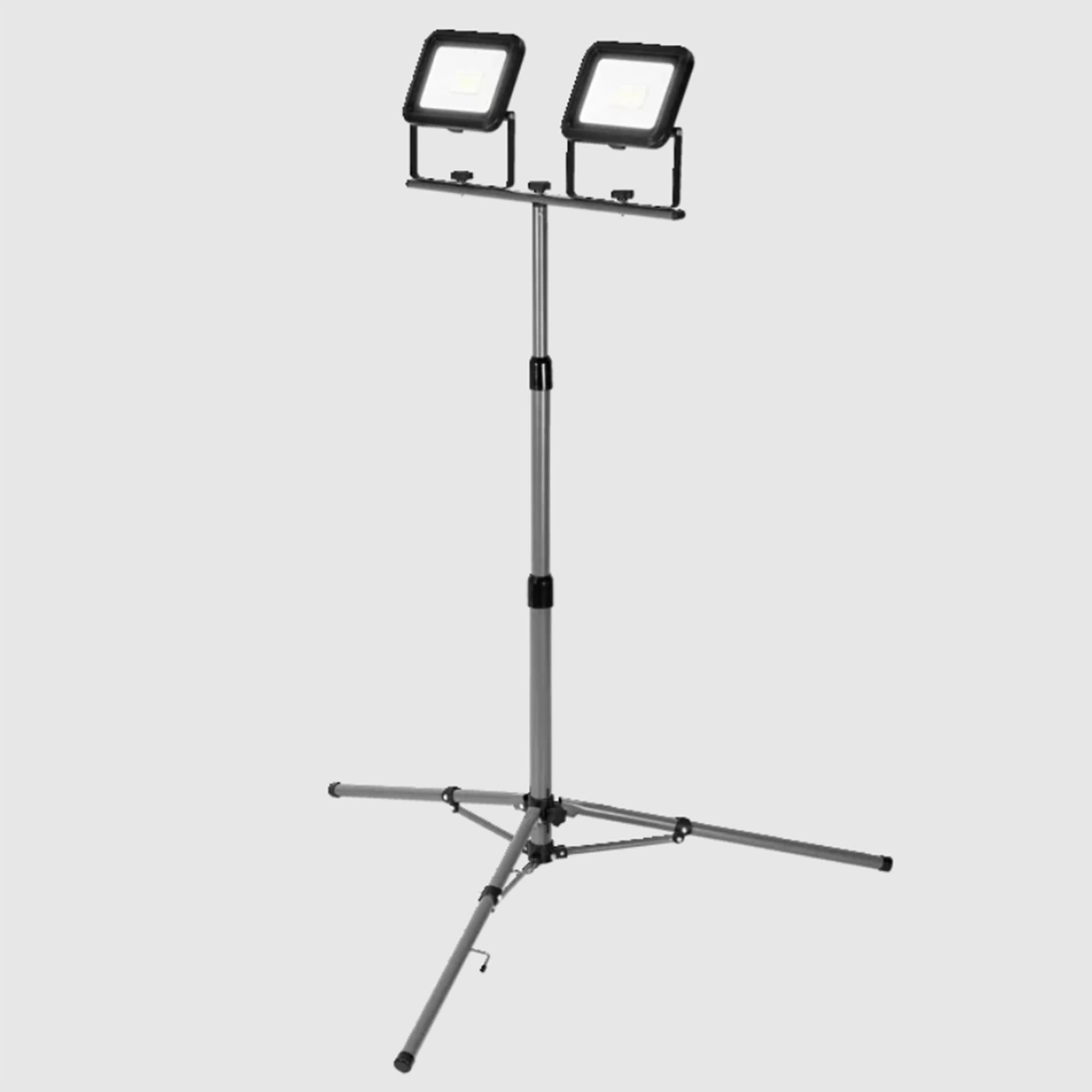 Der LED-Flutlichtstrahler auf Stativ ist eine robuste Beleuchtungslösung mit 60W und 6000lm Lichtstrom. Er strahlt kaltweißes Licht mit einer Farbtemperatur von 6500K aus, was eine hervorragende Ausleuchtung des Arbeitsbereichs garantiert. Der Lichtabstrahlwinkel von 115° sorgt für eine breite Lichtabdeckung und die Schutzart IP54 ermöglicht den Einsatz im Freien.