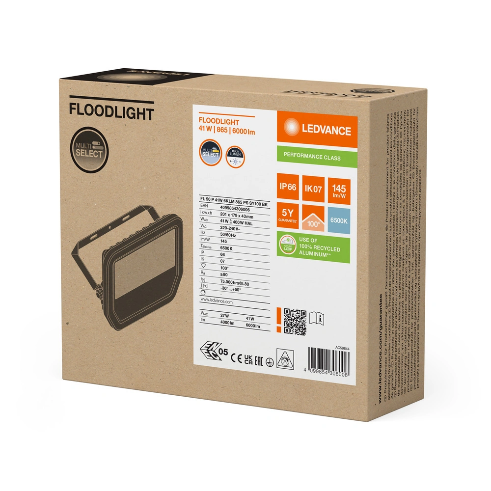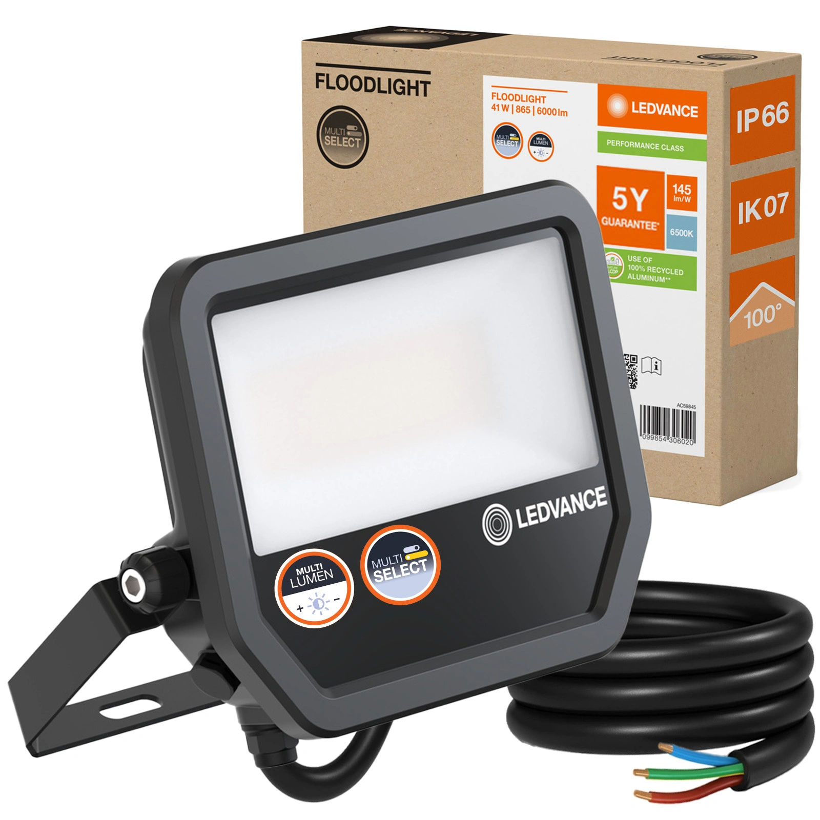 LED-Flutlicht in schwarz eine bekannte Marke auf dem Beleuchtungsmarkt LEDVANCE ist eine moderne Beleuchtung, die sich durch eine sehr gute Qualität des ausgestrahlten LICHTS, hohe Haltbarkeit, Widerstandsfähigkeit gegen schwere Wetterbedingungen und mechanische Beschädigungen auszeichnet. Die kompakten Abmessungen und das geringe Gewicht ermöglichen eine einfache Installation anstelle der alten, verschlissenen und stromfressenden traditionellen Halogenlampen. Darüber hinaus bietet der Scheinwerfer eine Energieeinsparung von bis zu 90 % (im Vergleich zu Scheinwerfern mit Halogenlampen).