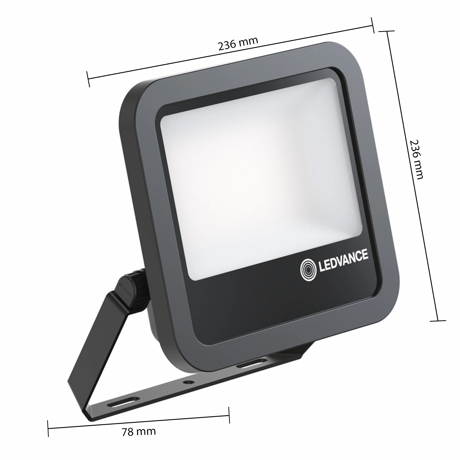 LED-Flutlicht in schwarz eine bekannte Marke auf dem Beleuchtungsmarkt LEDVANCE ist eine moderne Beleuchtung, die sich durch eine sehr gute Qualität des ausgestrahlten LICHTS, hohe Haltbarkeit, Widerstandsfähigkeit gegen schwere Wetterbedingungen und mechanische Beschädigungen auszeichnet. Die kompakten Abmessungen und das geringe Gewicht ermöglichen eine einfache Installation anstelle der alten, verschlissenen und stromfressenden traditionellen Halogenlampen. Darüber hinaus bietet der Scheinwerfer eine Energieeinsparung von bis zu 90 % (im Vergleich zu Scheinwerfern mit Halogenlampen).