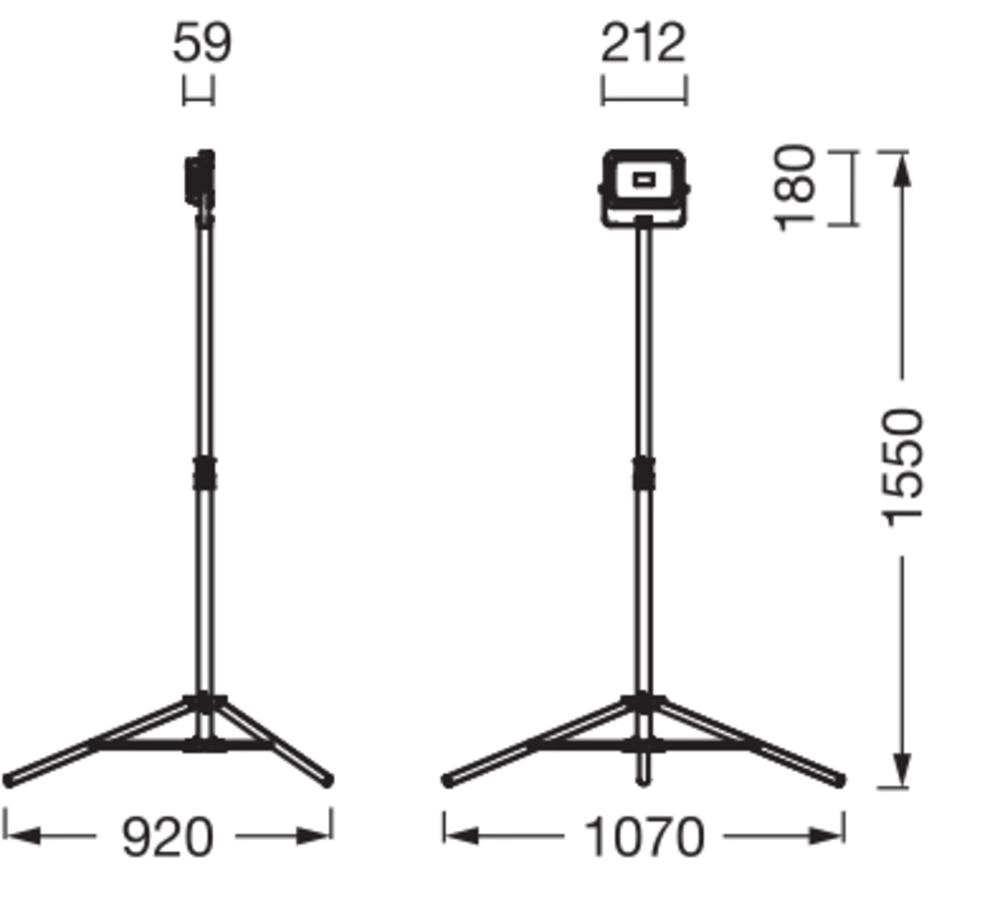 - Höhenverstellbares Stativ bis zu 1,8 m.
