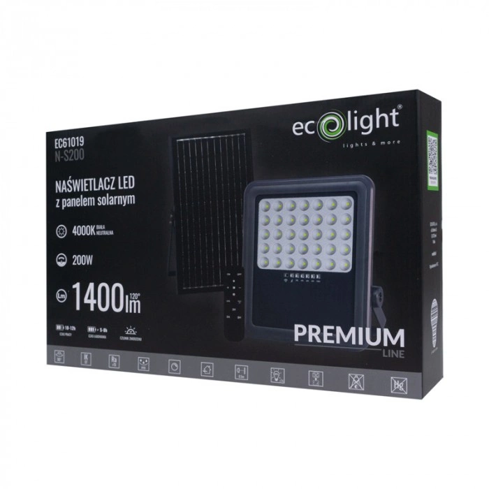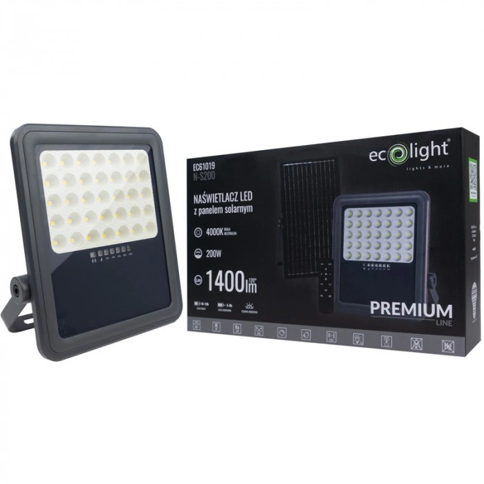 LED-Flutlicht Solar Reflektor 200W 1400lm 4000K Neutral IP65 mit Dämmerungssensor + Ecolight Fernbedienung