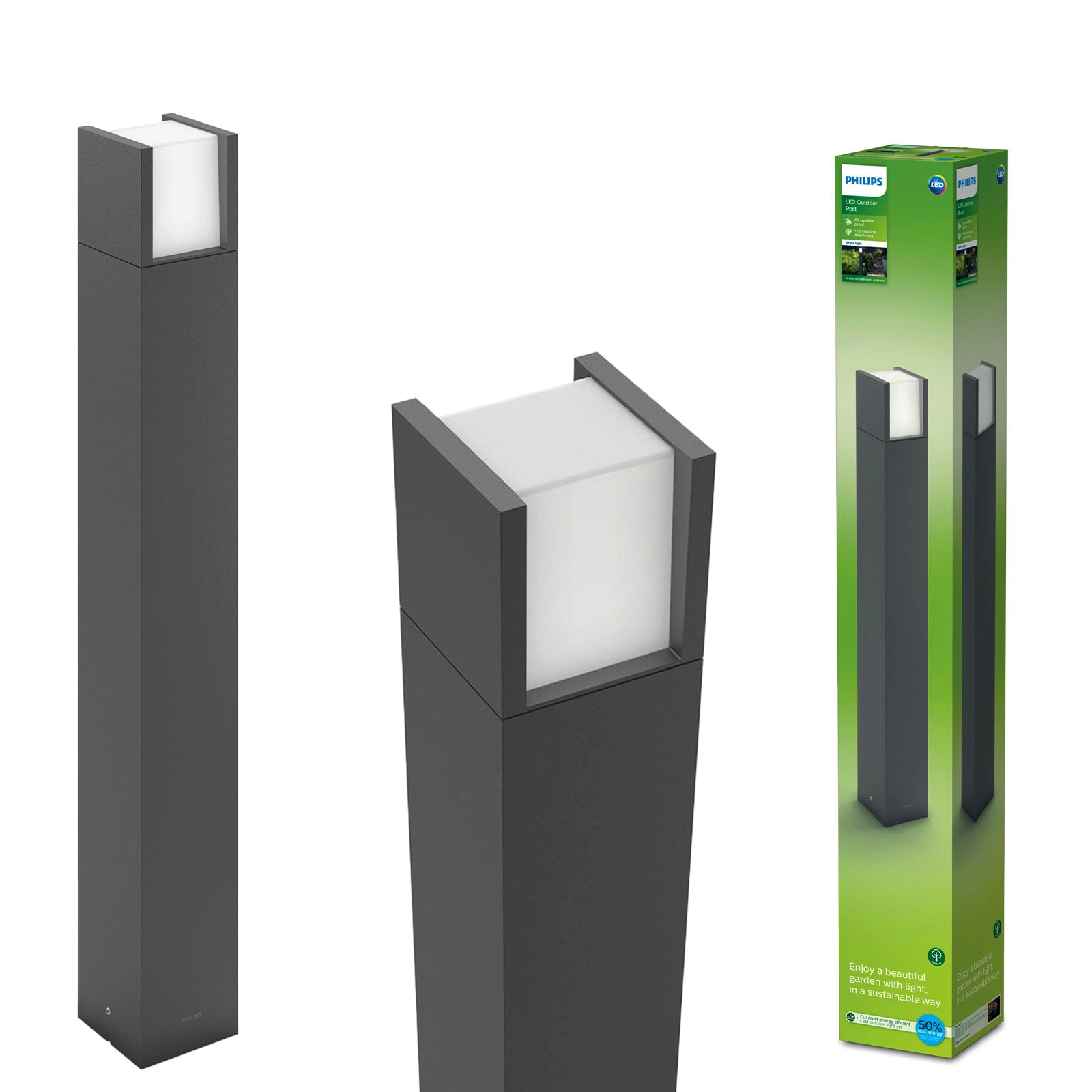 Wir stellen die 77 cm hohe Gartenpfostenleuchte vor, die mit der energieeffizienten LED-Technologie von Philips ausgestattet ist und modernes Design und Effizienz garantiert. Das Modell Arbour Ultra Efficient verfügt über eine Leistung von 3,8 Watt und erzeugt einen Lichtstrom von 800 Lumen, der ein angenehmes, warmes Licht mit einer Farbtemperatur von 2700 K erzeugt, das sich ideal für die Beleuchtung von Außenbereichen eignet. Unsere Gartenlampe ist für den dauerhaften Einsatz entwickelt worden und bietet eine Lebensdauer von bis zu 50.000 Stunden. Dank ihrer hohen Energieeffizienz senkt das Produkt nicht nur den Energieverbrauch, sondern kommt auch der Umwelt zugute. Wenn Sie sich für unsere Lampe entscheiden, investieren Sie in eine stilvolle und funktionelle Ergänzung Ihres Gartens, die dessen Qualitäten aufwertet und einen bemerkenswerten visuellen Effekt bietet.