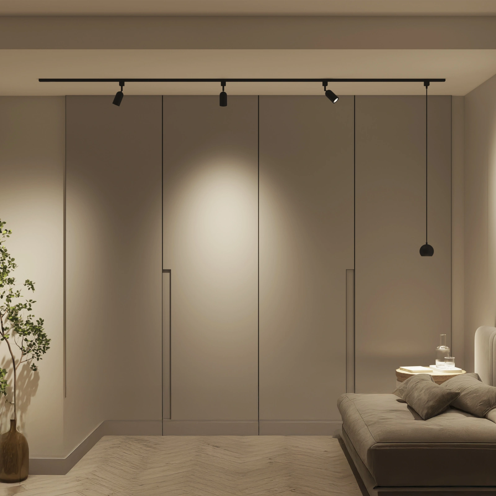 Mit dem Schienensystem haben Sie die volle Kontrolle über Ihre Beleuchtung und können sie genau auf den Lebensstil in Ihrem Zuhause abstimmen. Es funktioniert mit einer breiten Palette von Standard- und intelligenten Glühbirnen sowie Strahlern mit GU10-Sockel und gibt Ihnen die Freiheit, genau das Licht zu wählen, das Sie brauchen. Die Möglichkeit, dimmbare Lichtquellen mit Fernbedienung zu verwenden, erlaubt es Ihnen, die Atmosphäre Ihres Interieurs ganz einfach zu gestalten, während Lampen mit Farbtemperatursteuerung einen nahtlosen Übergang von kühlem, anregendem Weiß zu warmem, entspannendem Licht ermöglichen. Mit dieser Lösung können Sie den Charakter eines Raumes mit einer einzigen Bewegung verändern und die Beleuchtung an jeden Moment des Tages anpassen.