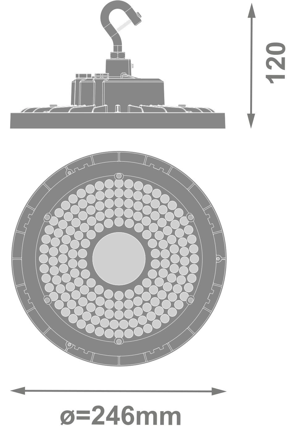 Die aus langlebigem Aluminium gefertigte Leuchte bietet Flexibilität bei der Montage und ermöglicht sowohl eine Anbau- als auch eine abgehängte Installation. Die fortschrittliche Technologie garantiert eine Lebensdauer von bis zu 100.000 Stunden und minimiert die Notwendigkeit einer häufigen Wartung. Ein hoher Leistungsfaktor von 0,95 und eine Netzversorgung von 220-240 V gewährleisten einen stabilen Betrieb. Das Produkt ist CE-konform und bietet Zuverlässigkeit und Energieeffizienz in der Kategorie der professionellen Industriebeleuchtung.