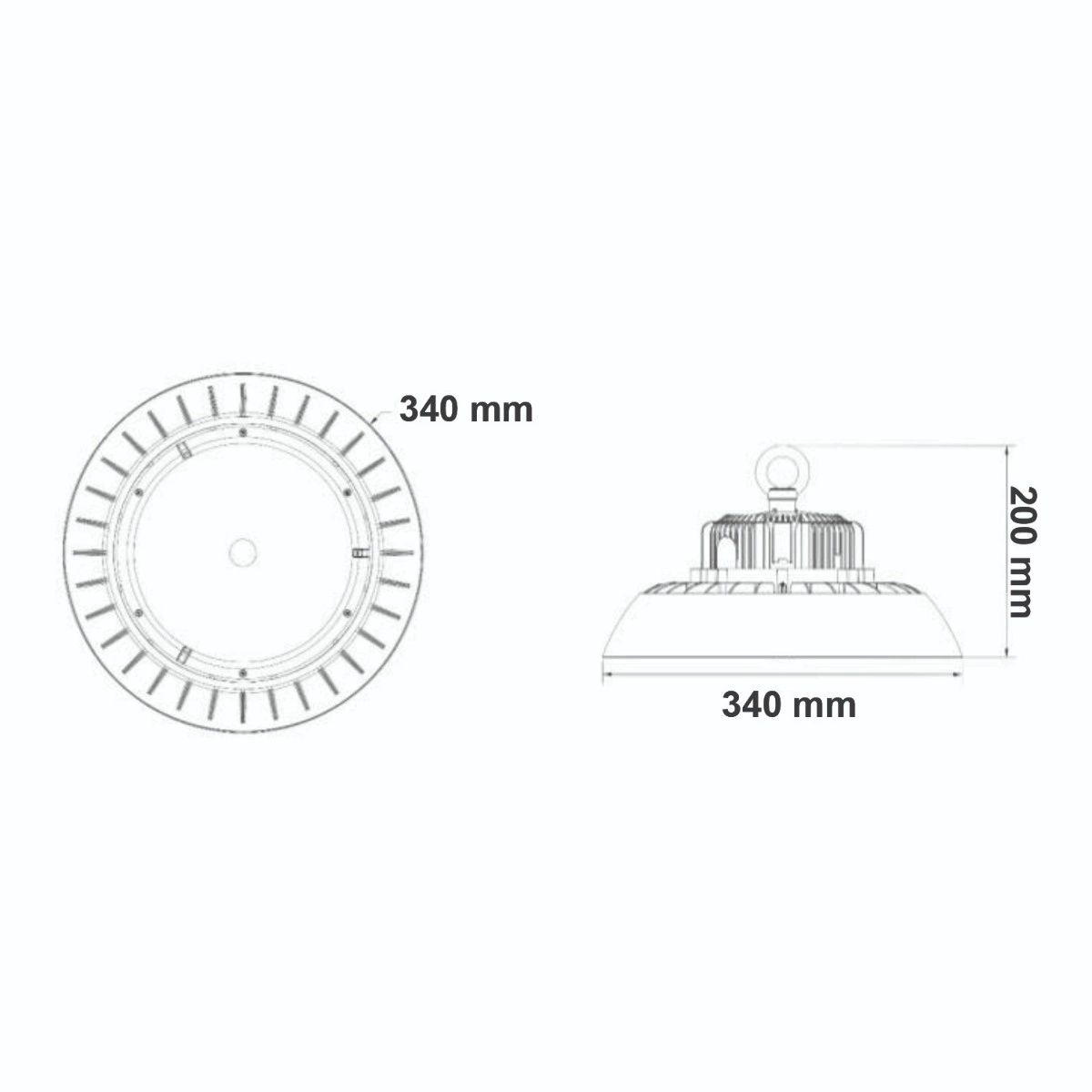 • Die Leuchte ist in verschiedenen Wattzahlen erhältlich: 100W, 150W, 200W, 240W.
