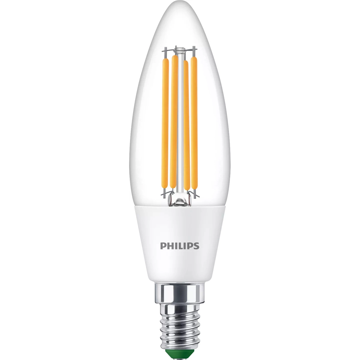 Entdecken Sie mit der Philips E14 UltraEfficient LED-Glühbirne eine neue Dimension der Lichteffizienz. Mit einer Leistungsaufnahme von nur 2,3 W entspricht sie einer herkömmlichen 40-W-Glühbirne, was erhebliche Einsparungen bei Ihren Stromrechnungen bedeutet. Diese Glühbirne gibt einen Lichtstrom von 485lm ab, was sie in Kombination mit einer beeindruckenden Lichtausbeute von 210,9lm/W zu einer der effizientesten auf dem Markt macht. Ihre warmweiße Lichtfarbe von 3000K bringt eine angenehme Atmosphäre in jeden Raum.