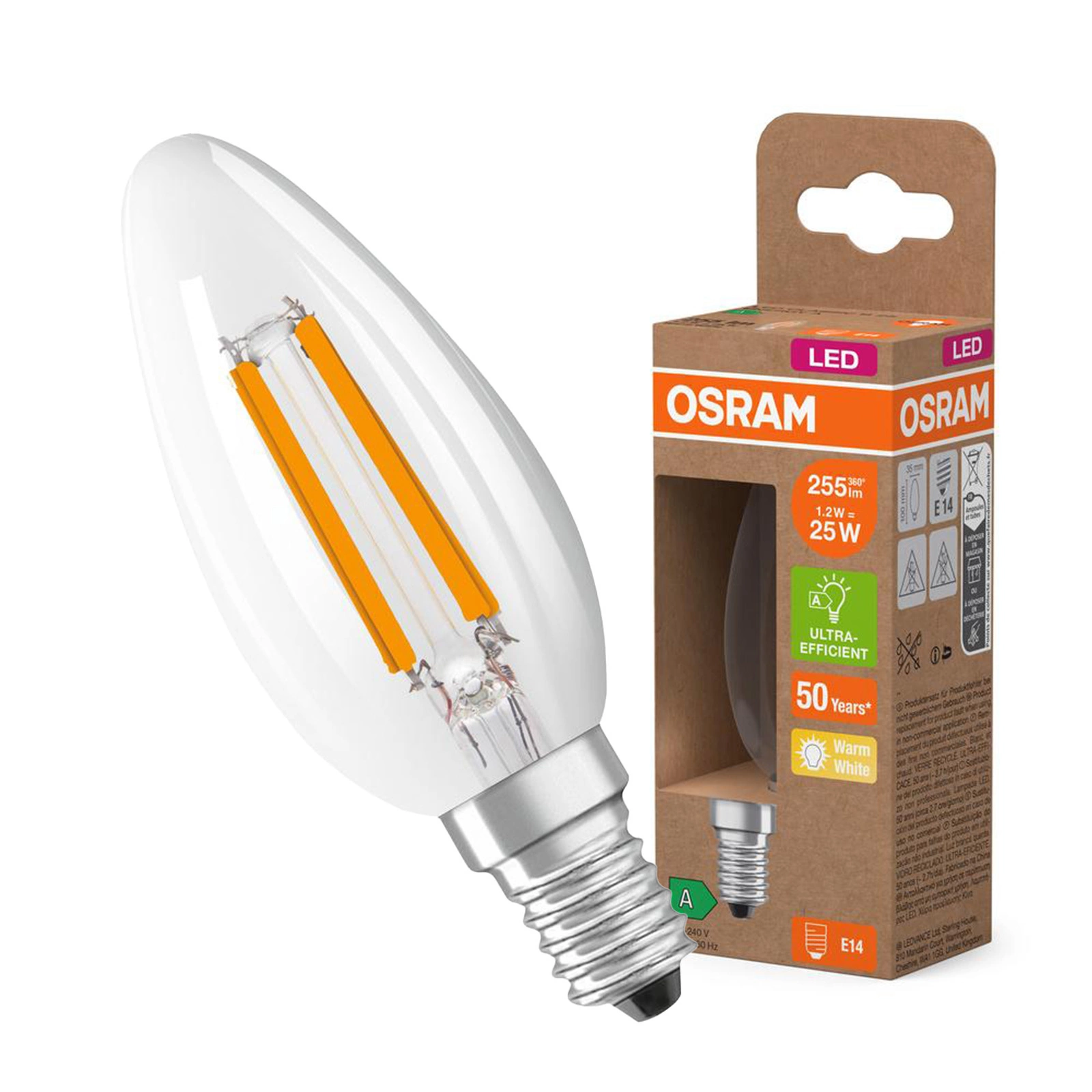 LED-Lampe B35 Kerze E14 1.2W = 25W 255lm 2700K Warm 330° 213lm/W CLASSIC ENERGY EFFICIENCY Osram