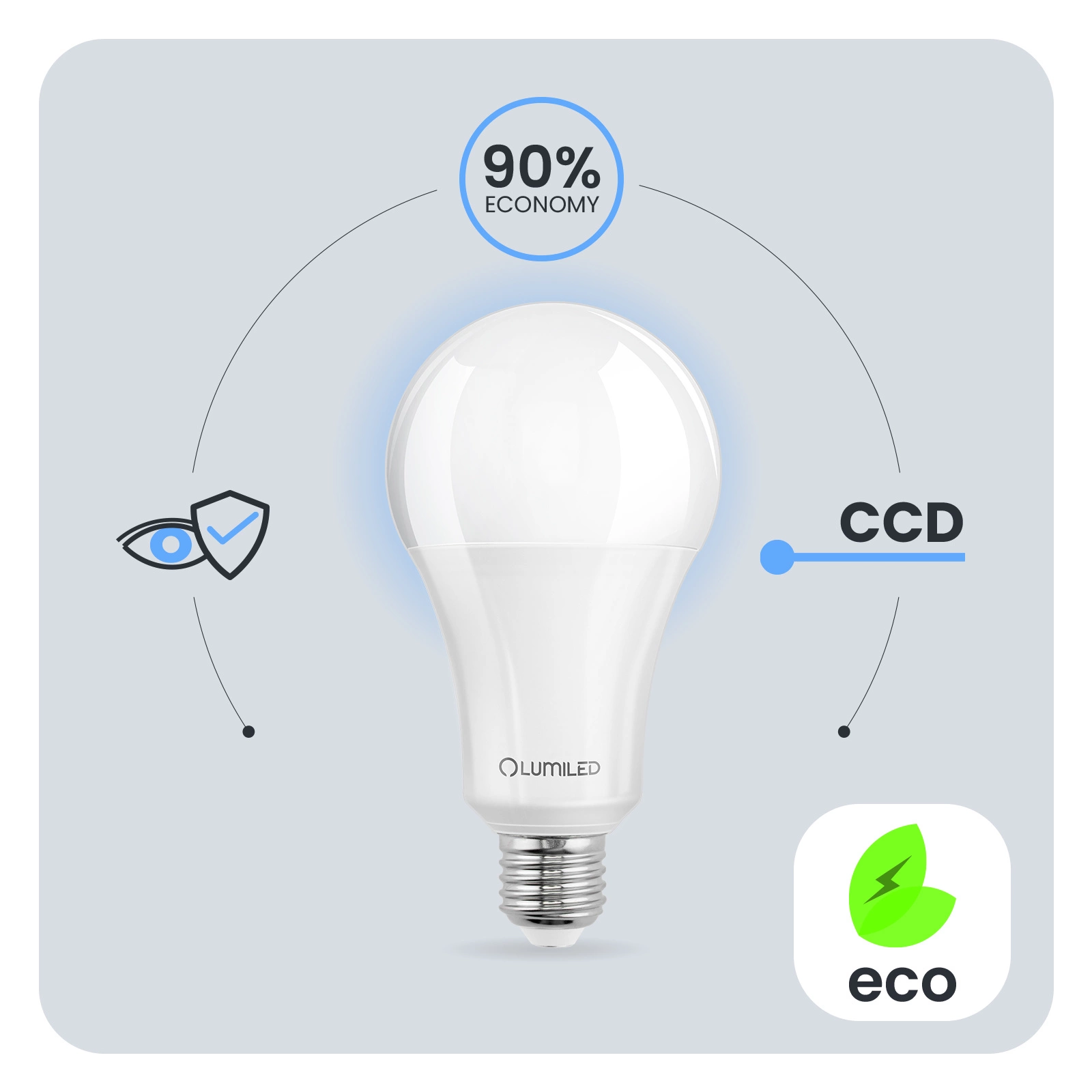 Der in der LED-Glühbirne verwendete CCD-Inverter macht die Glühbirne widerstandsfähig gegen Einbrüche und Spitzen in der Netzspannung. Das Licht flackert und zittert nicht. Der CCD-Konverter sorgt dafür, dass die Glühbirne über einen langen Zeitraum hinweg einwandfrei funktioniert. Bei der Entwicklung der LUMILED-Glühbirnen wurde an den Benutzer gedacht. Eine schlechte Beleuchtungsqualität kann zur Ermüdung der Augen führen. Deshalb verfügen unsere Lampen über die technische Entwicklung Eye Safe, um in jedem Raum eine angenehme und augenfreundliche Beleuchtung zu gewährleisten.