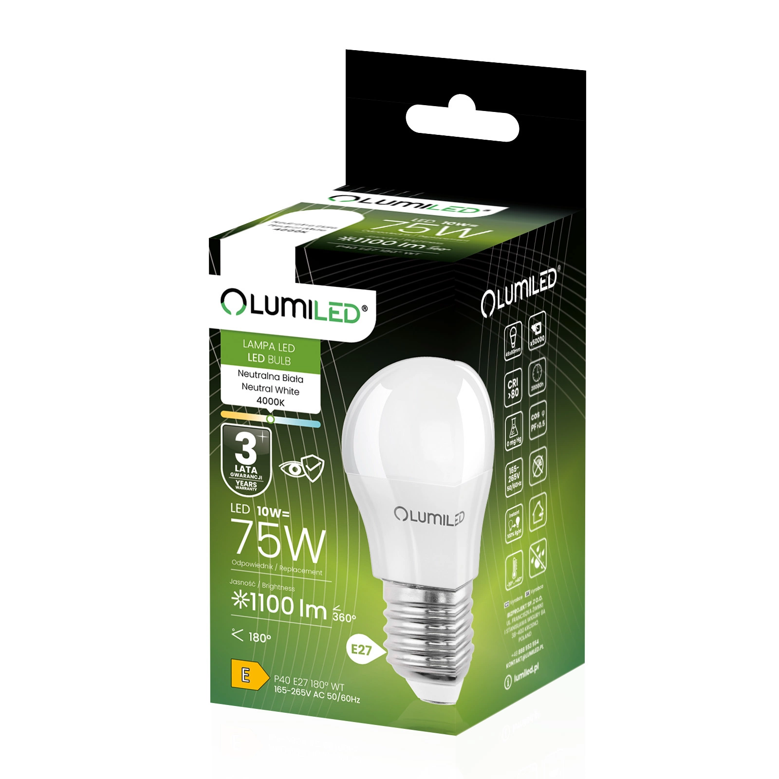 Die Lumiled LED-Lampe mit 10W und 4000K Farbe ist eine Kombination aus hoher Leistung und Energieeffizienz. Mit bis zu 1.100 Lumen bietet sie ein Licht, das mit dem einer herkömmlichen 75-Watt-Glühbirne vergleichbar ist, während sie gleichzeitig den Stromverbrauch deutlich reduziert. Dank ihrer geringen Größe und des E27-Gewindes eignet sie sich ideal für Wandleuchter, Lampen und Vorrichtungen mit begrenztem Platzangebot. Sie ist eine praktische Wahl für Räume, in denen Sie eine klare, aber ansprechende Beleuchtung benötigen.