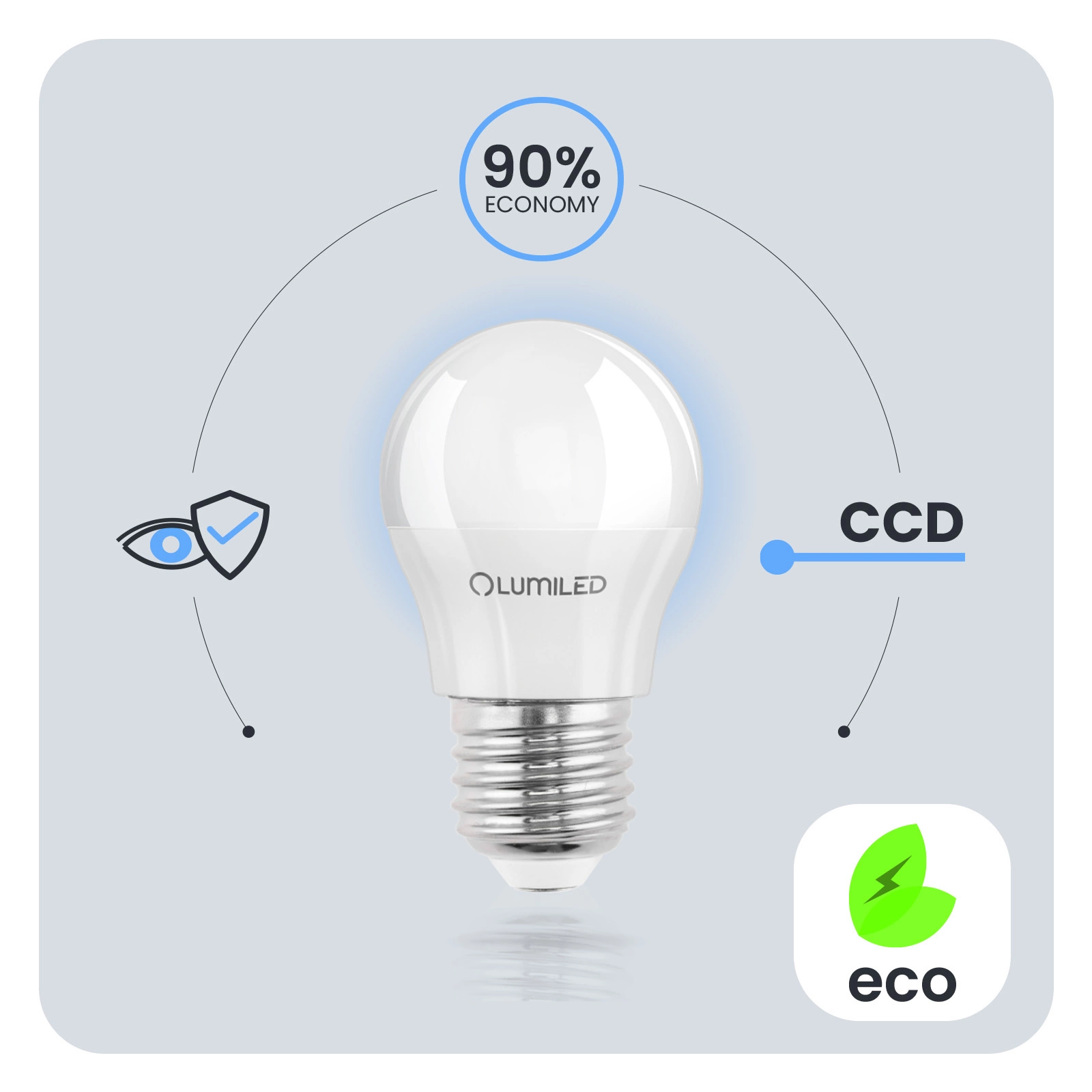 Der in der LED-Glühbirne verwendete CCD-Inverter macht die Glühbirne widerstandsfähig gegen Einbrüche und Spitzen in der Netzspannung. Das Licht flackert und zittert nicht. Der CCD-Konverter sorgt dafür, dass die Glühbirne über einen langen Zeitraum hinweg einwandfrei funktioniert. Bei der Entwicklung der LUMILED-Glühbirnen wurde an den Benutzer gedacht. Eine schlechte Beleuchtungsqualität kann zur Ermüdung der Augen führen. Deshalb verfügen unsere Lampen über die technische Entwicklung Eye Safe, um in jedem Raum eine angenehme und augenfreundliche Beleuchtung zu gewährleisten.