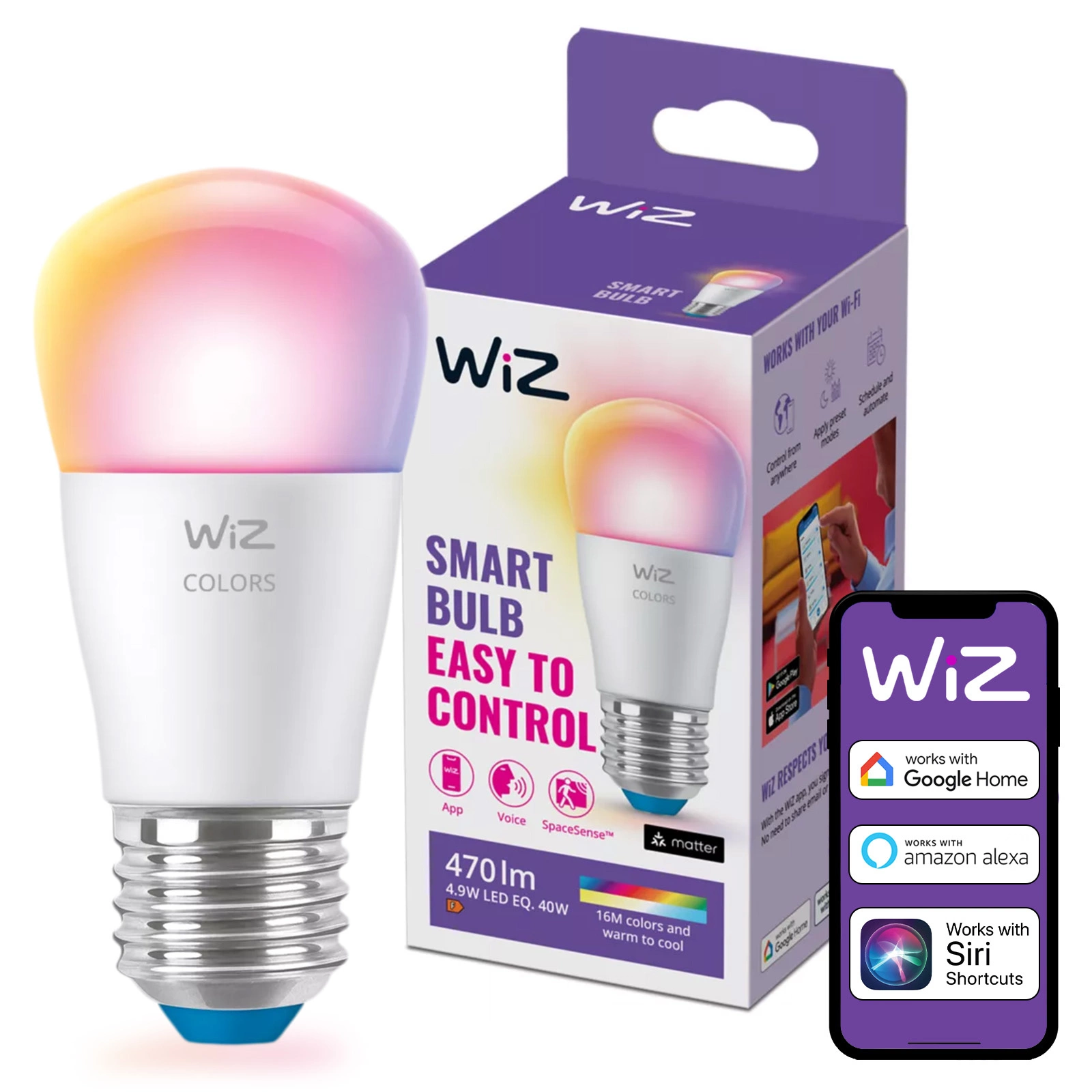 Intelligente LED-Glühbirne von WiZ steuerung über eine mobile App WiZ Verbunden. Die LED-Glühbirne zeichnet sich durch eine sehr gute Qualität des ausgestrahlten Lichts, eine getreue Farbwiedergabe (CRI90) und eine hohe Lichtausbeute aus. Die Smart LED-Glühbirne ist mit einer energieeffizienten LED-Lichtquelle von 4,9 W (entspricht einer herkömmlichen 40 W-Glühbirne), einem Lichtstrom von 470 lm und dank der mobilen App WiZ Verbunden können wir die Farbtemperatur der Glühbirne einstellen von angenehm warm über neutral bis kalt und mehrfarbig (RGB).
