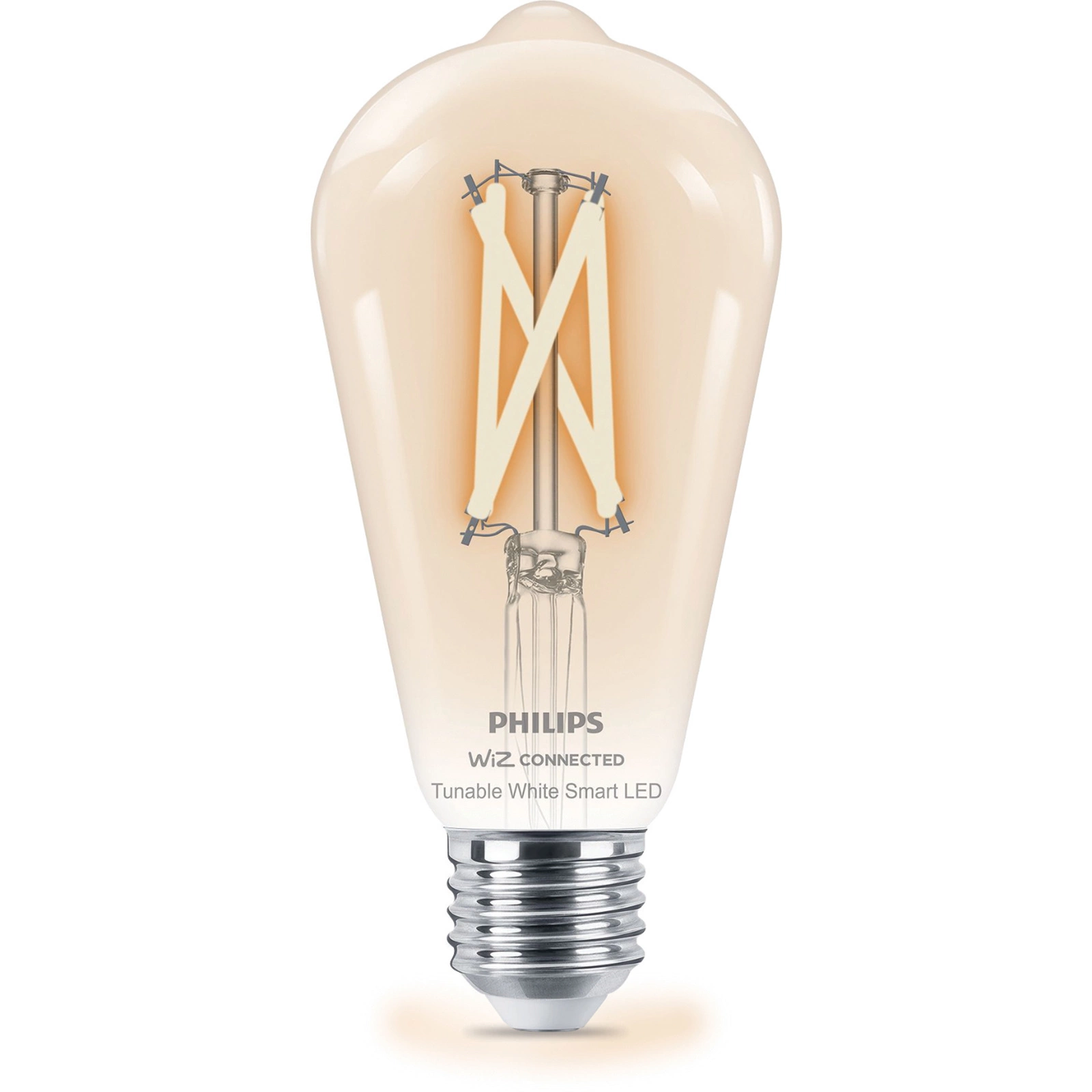 Intelligente Steuerungsfunktionen dank integrierter WiFi- und Bluetooth-Konnektivität. Sie können die Beleuchtung ganz einfach über die WiZ Connected App steuern und so die Helligkeit und Farbe des Lichts ganz nach Ihren Wünschen anpassen. Genießen Sie eine Produktlebensdauer von 15.000 Stunden und die Möglichkeit von bis zu 20.000 Ein-/Ausschaltzyklen. Schaffen Sie eine einzigartige Atmosphäre in Ihrem Zuhause mit einer Glühbirne, die moderne Technologie mit klassischem Stil verbindet.