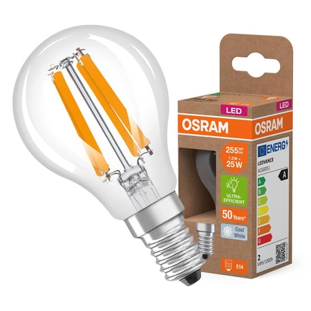 LED-Lampe P45 Ball E14 1.2W = 25W 255lm 4000K Neutral 330° 213lm/W CLASSIC ENERGY EFFICIENCY Osram