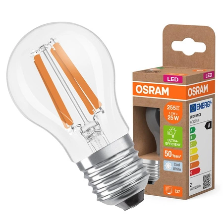 LED-Lampe P45 Ball E27 1.2W = 25W 255lm 4000K Neutral 330° 213lm/W CLASSIC ENERGY EFFICIENCY Osram