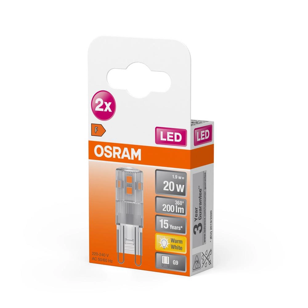 LED Lampen des renommierten und anerkannten Unternehmens in der Beleuchtungsindustrie OSRAM mit einem G9-Schraubsockel und einer Wattleistung von 1,9 W. Die Glühbirne ist ideal für jeden Haushalt, jedes Geschäft, Hotel oder Restaurant als Akzent- oder Dekorationsbeleuchtung und kann in alle herkömmlichen Leuchten mit einem g9-Schraubsockel.