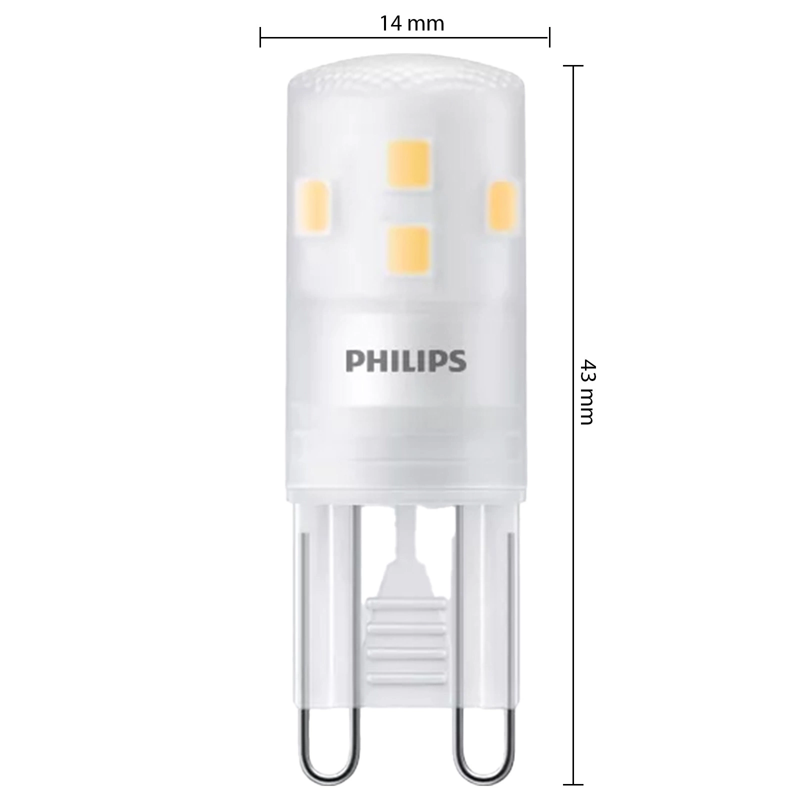 Entdecken Sie Qualität und Energieeffizienz mit den drei G9-LED-Lampen von Philips. Mit nur 1,9 W ersetzt diese Kapsellampe eine herkömmliche 25-W-Glühbirne und erzeugt einen Lichtstrom von 220 lm. Sie eignet sich perfekt für alle Bedingungen und bietet ein angenehmes warmweißes Licht mit einer Farbtemperatur von 2700 K und einem breiten Abstrahlwinkel von 320°. Ihre Lebensdauer beträgt beeindruckende 15.000 Stunden und macht sie zu einer Investition für viele Jahre.