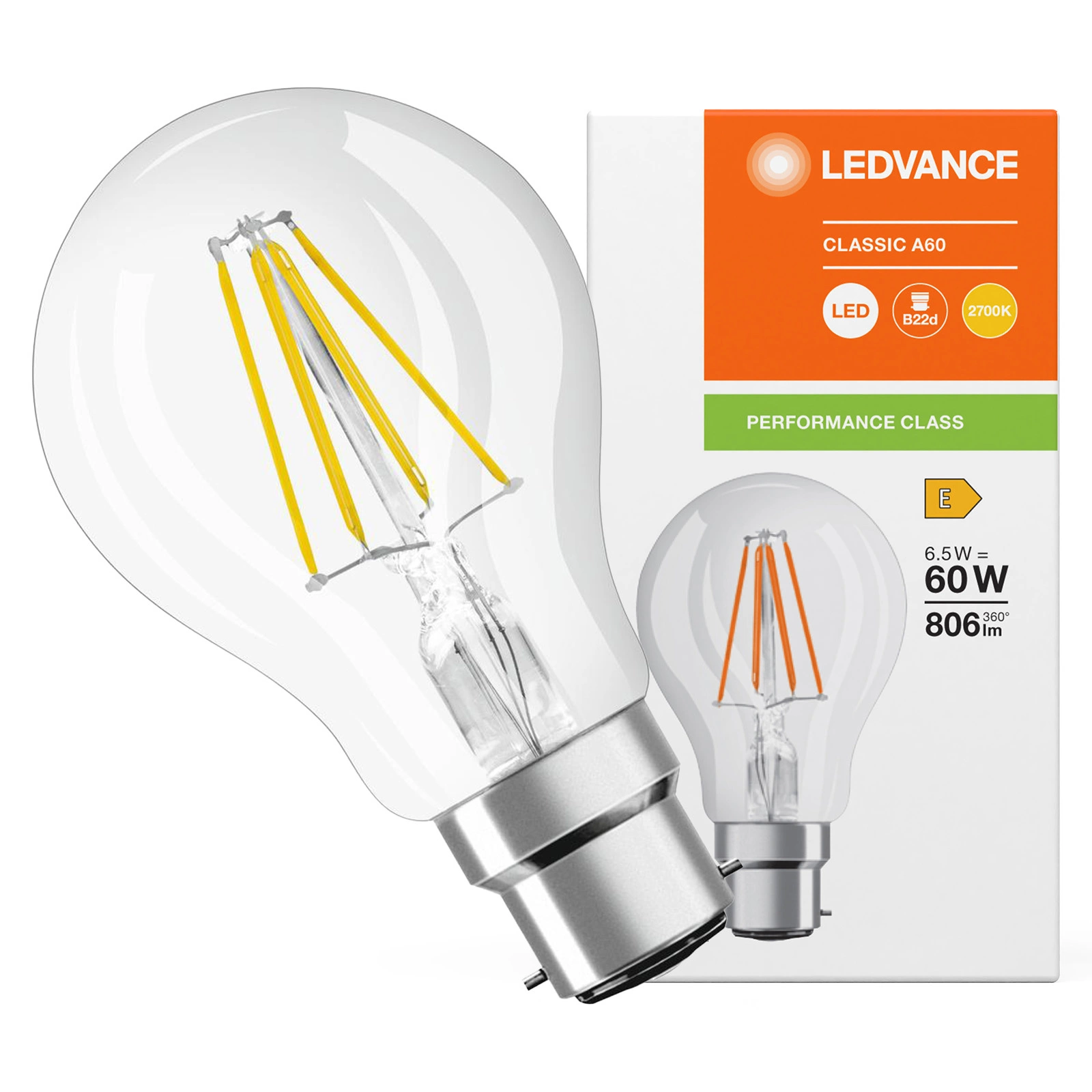 Entdecken Sie die exzellente Lichtqualität der LED-Glühbirne A60 B22d 6,5W von LEDVANCE, die moderne Technologie mit ästhetischem Design verbindet. Diese Glühbirne mit einem Äquivalent von 60 W strahlt warmweißes Licht mit einer Farbtemperatur von 2700 K und einem Lichtstrom von 806 lm aus und sorgt für eine gemütliche Atmosphäre in jedem Raum. Es ist ideal für den privaten und gewerblichen Gebrauch und dank seines hohen Farbwiedergabeindex (Ra 80) sind die Farben natürlich und angenehm für das Auge. Somit ist es die ideale Lösung für Wohn-, Schlaf- oder Büroräume.