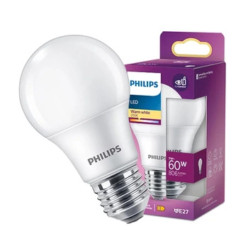 LED Lampen der 7W E27-Schraubsockel von Philips ist ein effizienter und moderner Ersatz für herkömmliche 60W-Glühlampen. Verströmt warmes, angenehmes Licht mit einer Farbtemperatur von 2700K, ideal für die Schaffung einer gemütlichen Atmosphäre in verschiedenen Räumen. Dank des Einsatzes von LED-Technologie zeichnet sich die Lampe durch einen geringen Energieverbrauch und eine lange Lebensdauer von bis zu 15.000 Stunden aus.