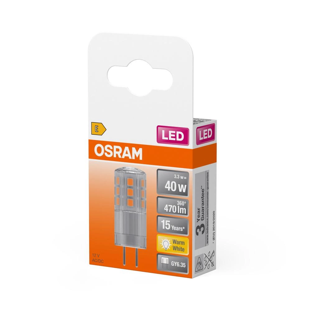 LED Lampen des renommierten und anerkannten Unternehmens in der Beleuchtungsindustrie OSRAM mit GY6.35-Kappe und 3,3 W Leistung. Die Glühbirne ist ideal für jeden Haushalt, jedes Geschäft, Hotel oder Restaurant als Akzent- oder Dekorationsbeleuchtung und kann in alle herkömmlichen Leuchten mit einem gY6.35-Sockel.