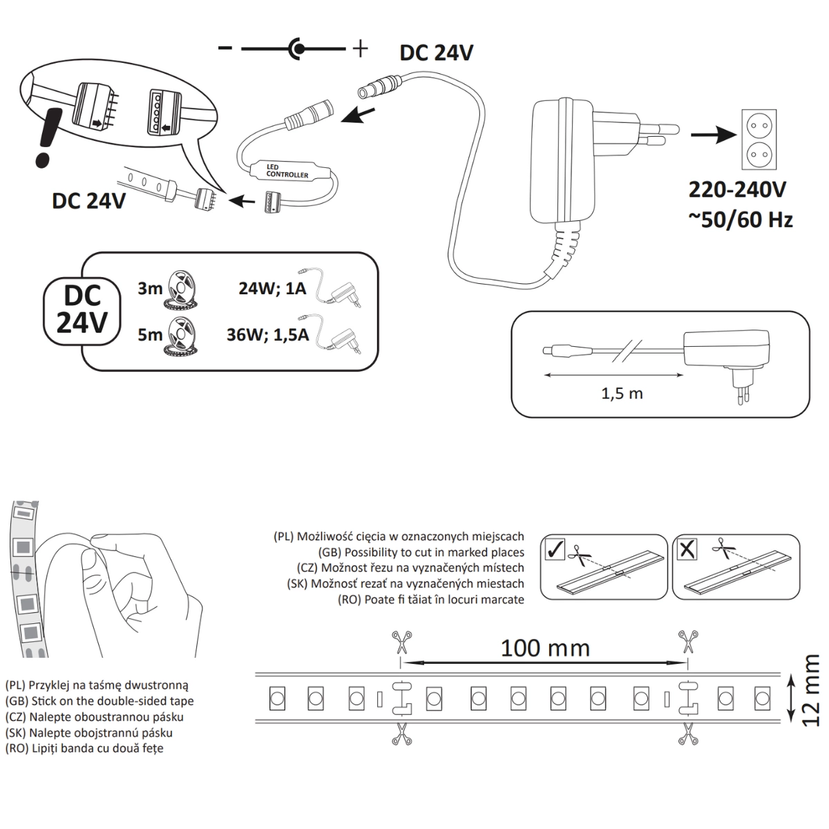 • Flexibilität und Vielseitigkeit: Dank seiner hohen Flexibilität und der Möglichkeit, alle 10 cm zu schneiden, kann der Streifen leicht an jeden Raum angepasst werden und ermöglicht kreative Beleuchtungsarrangements.