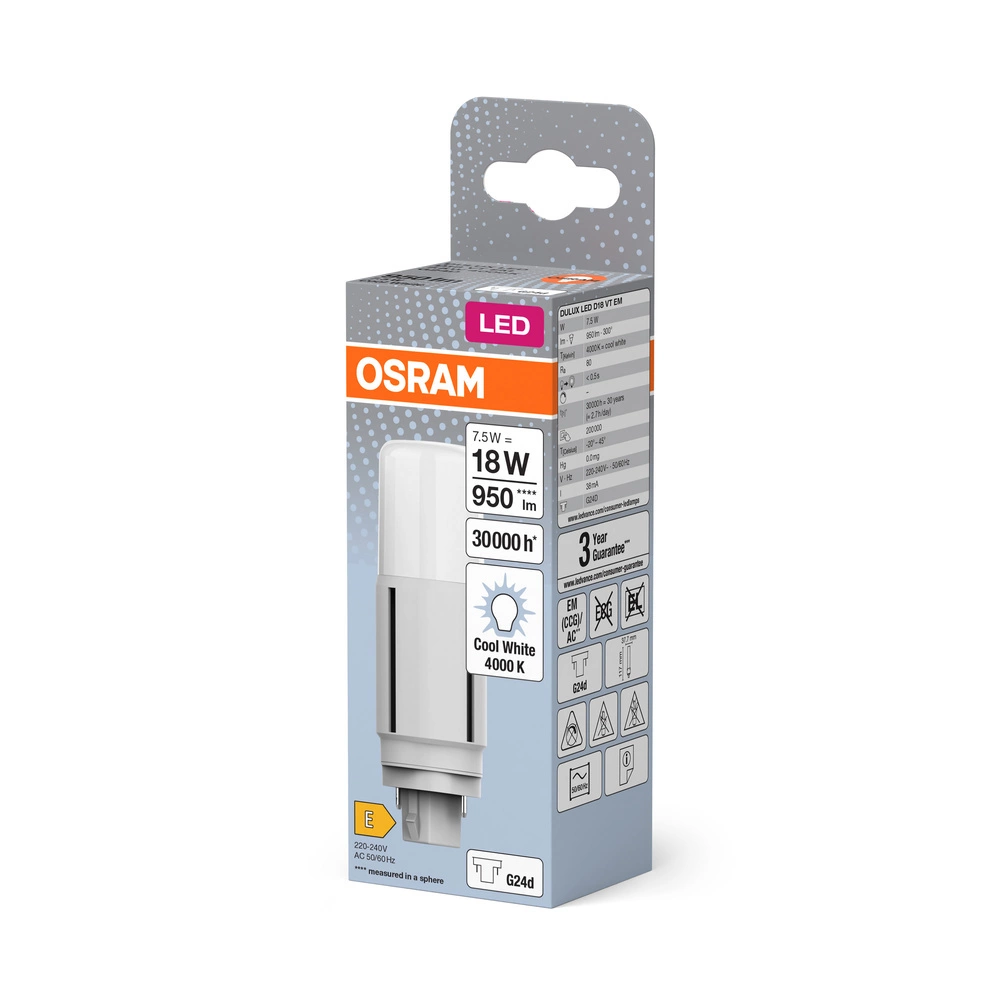 LED-Leuchtstofflampe einseitig G24d 7,5W = 18W 950lm 4000K Neutral 300° DULUX LED D VT EM & AC Osram