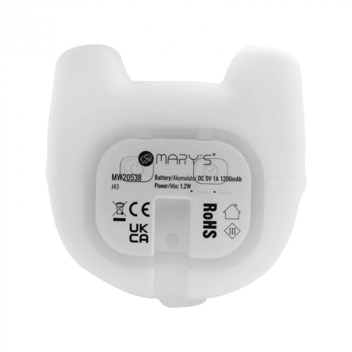 Dank der verschiedenen Beleuchtungsoptionen können Sie zwischen einem warmen, entspannenden 3000K-Licht oder einem farbenfrohen RGB-Modus wählen und so für jede Gelegenheit die richtige Atmosphäre schaffen. Marys LED-Nachtlampe schmückt nicht nur das Interieur, sondern ist auch funktional. Bei voller Ladung leuchtet die Lampe je nach Helligkeitseinstellung 6 bis 24 Stunden lang, und das Aufladen dauert dank des mitgelieferten USB-Kabels nur 3 Stunden. Die Lampe besteht aus haltbaren ABS-, PC- und Silikonmaterialien und ist sicher für die Verwendung im Kinderzimmer.