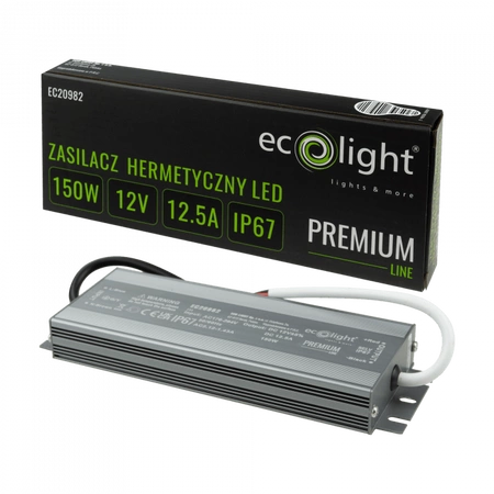 Das hermetische 12V-Netzteil PREMIUM 150W ist ein zuverlässiges und robustes Gerät zur Versorgung von Geräten, die eine stabile Spannung von 12V DC benötigen. Dank der hochwertigen Verarbeitung und des Schutzes gegen äußere Einflüsse ist es ideal für den Einsatz in rauen Wetter- und Industrieumgebungen. Die Stromversorgung zeichnet sich durch einen hohen Wirkungsgrad aus und ist damit eine ausgezeichnete Wahl für LED-Beleuchtungssysteme, Automatisierungs- oder Außenanlagen.
