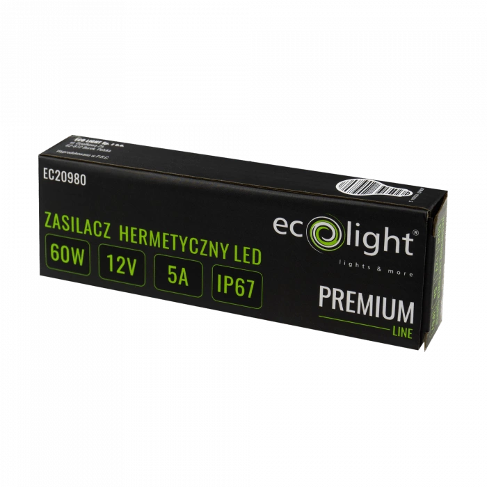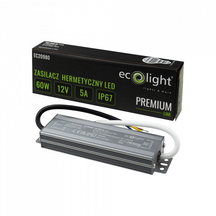 Das hermetische Netzteil PREMIUM 60W 12V ist ein zuverlässiges und robustes Gerät zur Versorgung von Geräten, die eine stabile Spannung von 12V DC benötigen. Dank der hochwertigen Verarbeitung und des Schutzes gegen äußere Einflüsse ist es ideal für den Einsatz in rauen Wetter- und Industrieumgebungen. Die Stromversorgung zeichnet sich durch einen hohen Wirkungsgrad aus und ist damit eine ausgezeichnete Wahl für LED-Beleuchtungssysteme, Automatisierungs- oder Außenanlagen.