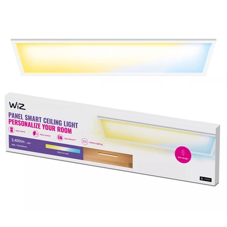 Entdecken Sie eine neue Dimension der Beleuchtung mit einer intelligenten Deckenleuchte von WiZ. Dank der WiFi- und Bluetooth-Technologie können Sie die Leuchte über die WiZ Connected App steuern und die ideale Farbtemperatur von warmen 2700K bis kühlen 6500K wählen. Das 120x30 cm große36W-Panel bietet einen beeindruckenden Lichtstrom von 3400 lm für eine hervorragende Sichtbarkeit in jedem Innenraum. Der elegante beigefarbene Kunststoffdiffusor mit modernem Design aus hochwertigem Metall fügt sich perfekt in jede Umgebung ein, vom Büro über die Küche bis zum Wohnzimmer. Schaffen Sie das perfekte Ambiente mit einem modernen Design, das in jeden Raum passt.