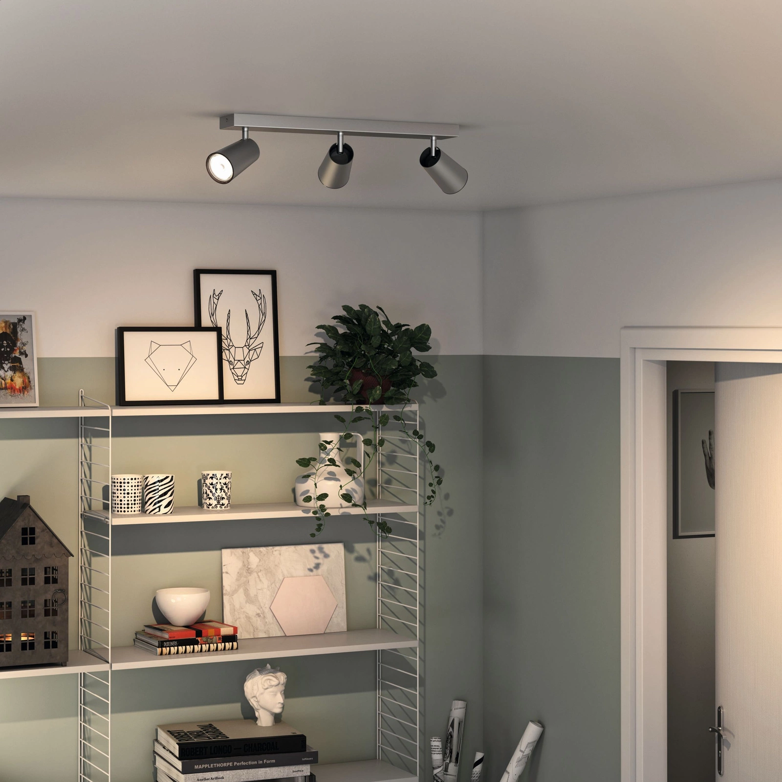 Entdecken Sie modernes Design und Funktionalität mit der Paisley Spotlight Deckenleuchte von Philips. Diese elegante Lampe wurde entworfen, um Ihrer Einrichtung Raffinesse und Stil zu verleihen. Sie besteht aus hochwertigem Aluminium und ist für eine lange Nutzungsdauer robust und widerstandsfähig. Das Modell Paisley ist mit drei GU10-Strahlern ausgestattet, die das Licht effizient im Raum verteilen und so die perfekte Atmosphäre für Arbeit und Entspannung schaffen. Die energieeffiziente Technologie senkt die Energiekosten, ohne die Helligkeit zu beeinträchtigen. Die einfache Installation macht diese Leuchte zur idealen Wahl für jeden Hausbesitzer, der eine ästhetische und praktische Beleuchtungslösung im modernen Stil sucht.