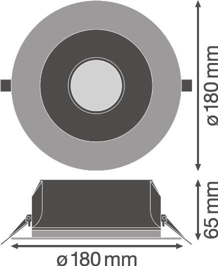 Das Ledvance-Downlight hat einen Blendungsgrad von UGR 19, der die Blendung reduziert. Die Einbauleuchte hat die Schutzart IP54 für Außenanwendungen und IP20 für Innenanwendungen. Ausgestattet mit DALI-Dimmtechnologie kann die Lichtintensität eingestellt werden. Die Leuchte bietet eine Lebensdauer von bis zu 70.000 Stunden, was sie zu einer langfristigen Lösung für die Innenbeleuchtung macht und keinen Austausch des Leuchtmittels erforderlich macht.