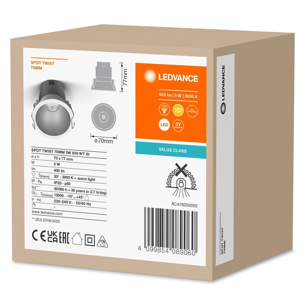 Dank ihrer weißen, warmen Lichtfarbe von 3000K verleiht sie dem Raum eine gemütliche Atmosphäre. Die Leuchte zeichnet sich durch einen hohen Farbwiedergabeindex von Ra 80 und einen Lichtverteilungswinkel von 30° aus, was eine gleichmäßige Innenraumbeleuchtung fördert. Das Produkt hat die Schutzart IP20 und die Schutzklasse II, was die Sicherheit im Gebrauch gewährleistet. Die einfache Einbaumontage ermöglicht eine schnelle und problemlose Installation.