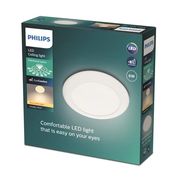 Die 6W LED-Deckenleuchte von Philips ist die ideale Lösung für alle, die Eleganz und Funktionalität in einem schätzen. Das Modell Cinnabar zeichnet sich durch seinen klassischen Stil aus und fügt sich perfekt in eine Vielzahl von Einrichtungsstilen ein. Sie strahlt ein weiches, warmes Licht mit einer Farbtemperatur von 2700 K aus, das in jedem Raum eine gemütliche Atmosphäre schafft. Mit einem Lichtstrom von 600 Lumen sorgt sie für eine ausreichende Beleuchtung bei einer hohen Energieeffizienz von 220-240 V und einer Frequenz von 50-60 Hz. Das Produkt bietet eine lange Lebensdauer von bis zu 15.000 Stunden, was es zu einer wirtschaftlichen und umweltfreundlichen Wahl macht. Die hochwertige Verarbeitung und Ästhetik machen diese Deckenleuchte zu einer perfekten Ergänzung sowohl für moderne als auch für traditionelle Innenräume.