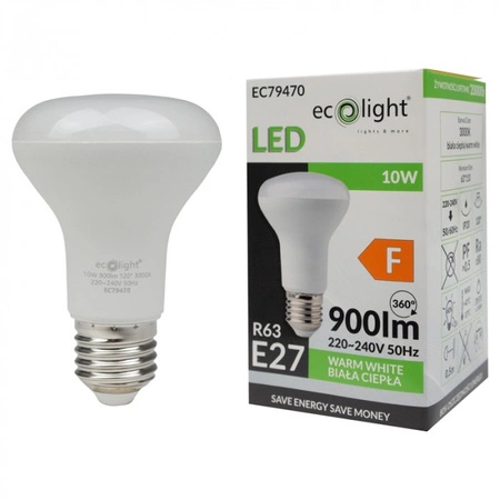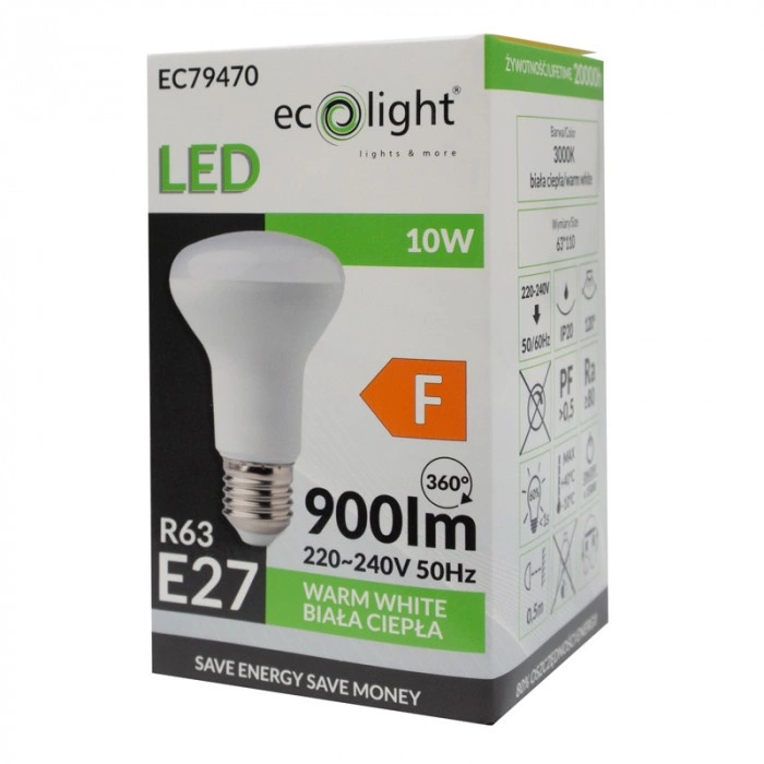 Durch die Verwendung eines E27-Sockels ist die Ecolight-Lampe äußerst vielseitig und einfach zu installieren. Ihr modernes Design mit dem milchigen Schirm fügt sich ästhetisch in jedes Interieur ein. Die Glühbirne hat eine Lebensdauer von bis zu 20.000 Stunden, was die Notwendigkeit eines häufigen Austauschs deutlich reduziert. Wenn Sie sich für die R63 LED-Lampe von Ecolight entscheiden, investieren Sie in eine ökologische und wirtschaftliche Lichtquelle.