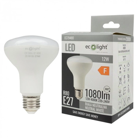 Entdecken Sie eine Welt voller lebendiger Farben und Energieeffizienz mit unserer LED Reflector R80 E27 12W 1080lm 4000K Neutral Ecolight Glühbirne. Ideal für eine Vielzahl von Anwendungen, von Wohnzimmern bis hin zu Küchen, wird diese Glühbirne Ihnen eine optimale Beleuchtung für jeden Raum bieten. Mit einem Lichtstrom von 1080 Lumen und einer neutralen Farbtemperatur von 4000K schaffen Sie eine angenehme Atmosphäre, ohne dass die Augen zu sehr geblendet werden.