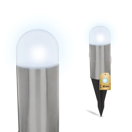 Eine Solarlampe mit modernem Design ist die perfekte Wahl für die Beleuchtung von Garten, Terrasse oder Wegen rund ums Haus. Ihr schlankes Design kombiniert einen Körper aus hochwertigem Kunststoff und Stahl mit einer robusten Speerspitze zum Einschlagen in den Boden. Mit ihrer minimalistischen Form und der kühlen Lichtfarbe passt sie sowohl zur modernen als auch zur klassischen Gestaltung von Außenbereichen. Durch die kompakten Abmessungen von 4,4 x 4,4 x 20 cm lassen sich mehrere Lampen leicht zu einem angenehmen, dezenten Lichteffekt arrangieren.