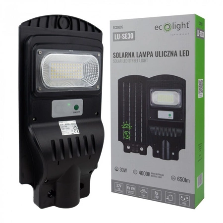 LED-Solar-Straßenlampe 30W 650lm 4000K Neutral IP65 mit Bewegungs- und Dämmerungssensor ECONOMY Ecolight