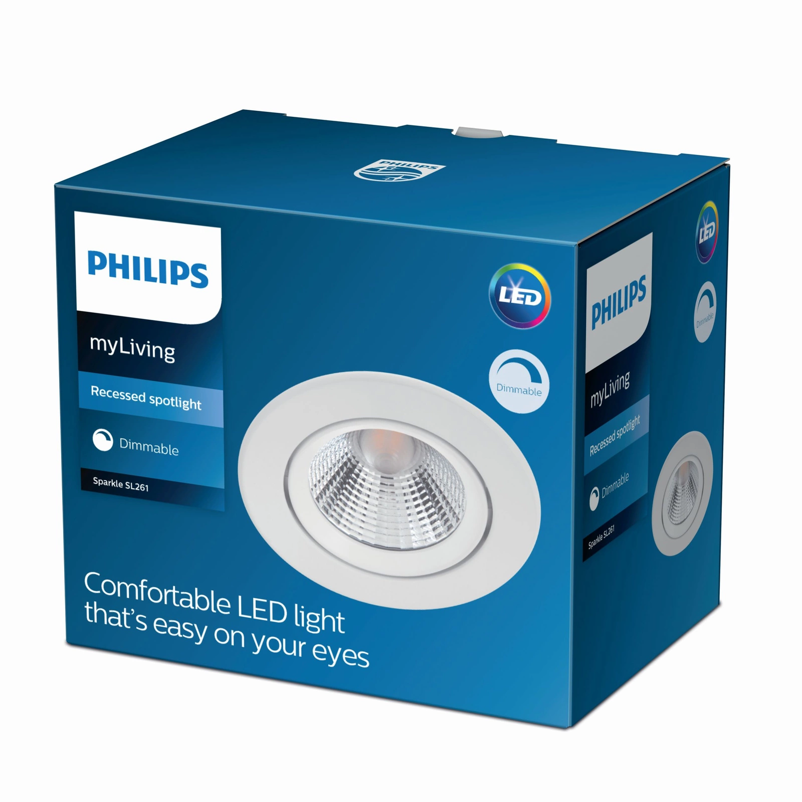 Entdecken Sie moderne Eleganz mit der 5,5 W LED-Einbauleuchte von Philips aus der Sparkle-Serie. Die fortschrittliche LED-Technologie sorgt für eine hohe Lichtleistung und erzeugt einen Lichtstrom von 350 Lumen. Mit einer Farbtemperatur von 2700K zeichnet sich das Licht durch ein angenehmes, warmes Weiß aus, das in jedem Raum für eine gemütliche Atmosphäre sorgt. Das Produkt entspricht den neuesten Standards und garantiert eine Lebensdauer von bis zu 20.000 Stunden, was es zu einer ausgezeichneten Wahl sowohl für private als auch für gewerbliche Innenräume macht. Die Leuchte zeichnet sich durch ein zeitgemäßes Design aus, das sich harmonisch in jede moderne Einrichtung einfügt. Darüber hinaus sorgt die weiße Farbgebung für eine ästhetisch ansprechende Leichtigkeit und gewährleistet gleichzeitig Funktionalität und Energieeffizienz. Dank des flächenbündigen Designs ist die Leuchte unauffällig und bietet gleichzeitig optimale Beleuchtung und Komfort.