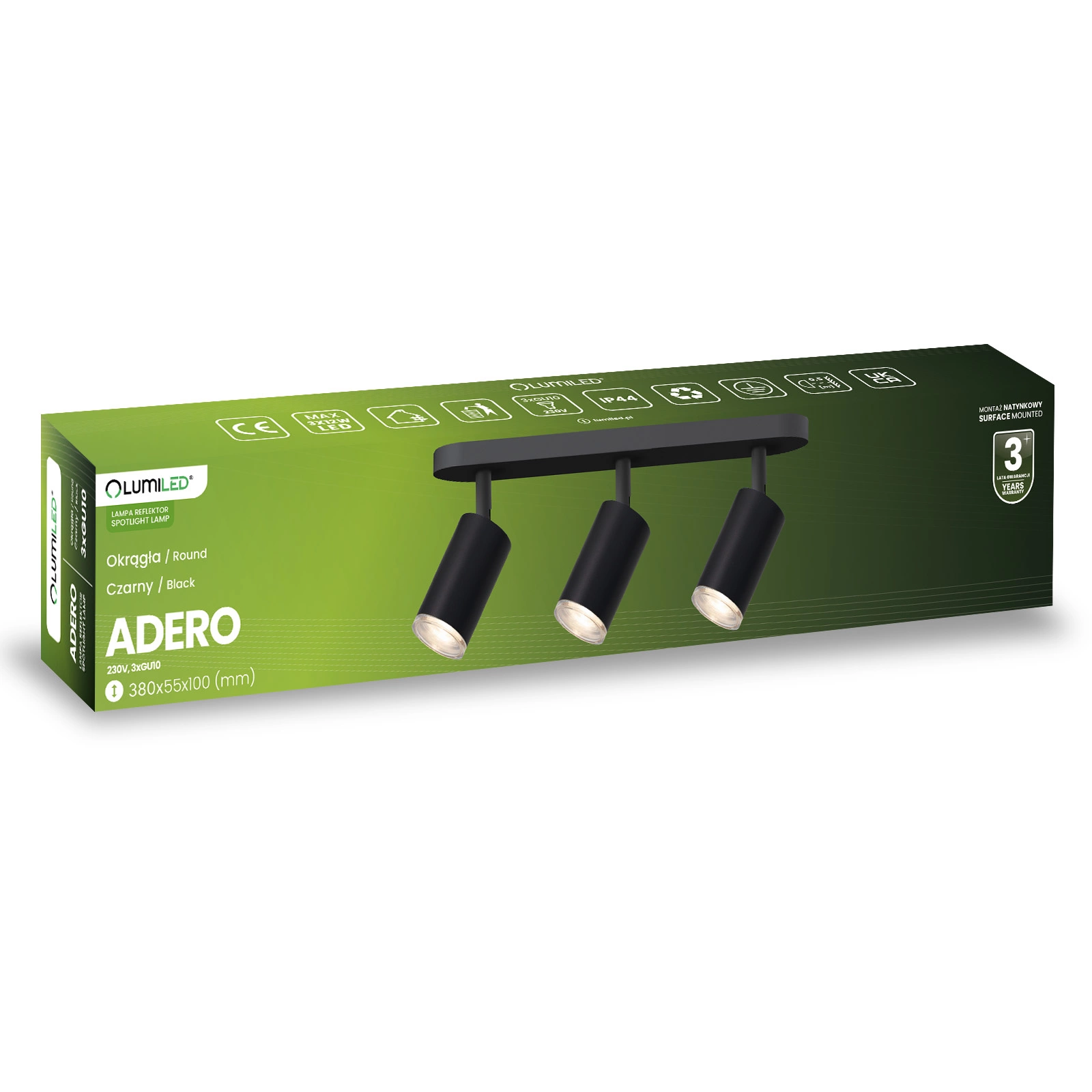 Lampe mit 3 LED-Strahlern aus der ADERO-Serie von Lumiled in Schwarz mit einem GU10-Schraubsockel ist die perfekte Kombination aus modernem Design und effizienter Lichttechnik. Durch sein minimalistisches Design passt er in viele Einrichtungen, sowohl in privaten als auch in gewerblichen Räumen. Er ist aus hochwertigen Materialien gefertigt, die seine Haltbarkeit und sein elegantes Aussehen gewährleisten. Der schwarze Strahler aus robustem Metall sieht nicht nur gut aus in Ihrem Zuhause, sondern ist auch widerstandsfähig gegen mechanische Beschädigungen, was eine lange Lebensdauer garantiert. Ihr schlichtes, aber stilvolles Design macht die die Leuchte fügt sich perfekt in viele Einrichtungsstile ein, von modern bis klassisch. Der Vorteil der Leuchte ist die Möglichkeit, jede beliebige Glühbirne mit einem GU10-Gewinde bis zu 12W zu montieren.