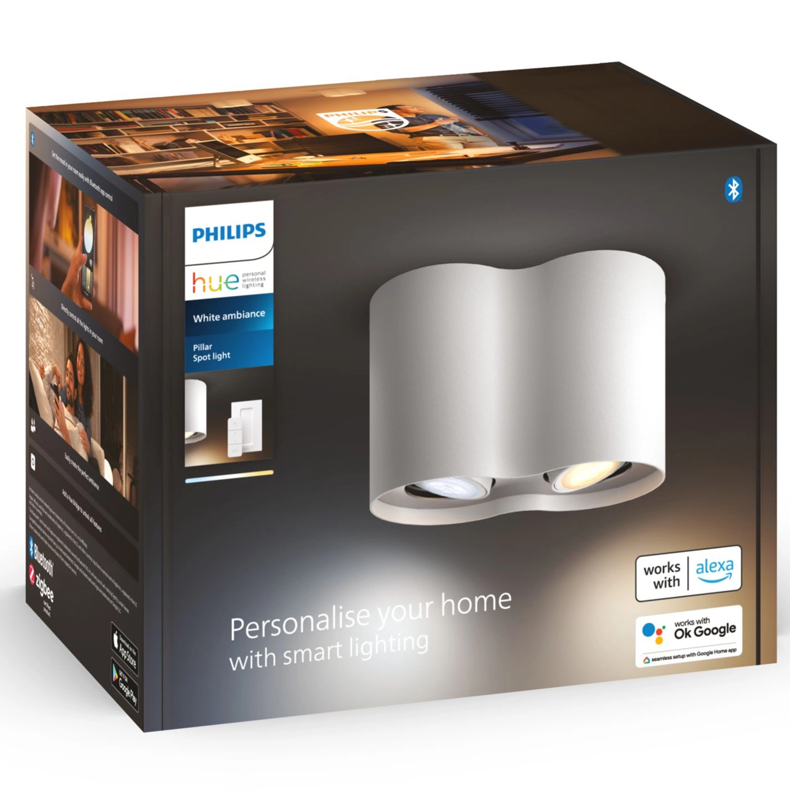 Doppelte Deckenleuchte HUE LED-Säule in der Beleuchtungsindustrie bekannt und respektiert Philips. Lampe ausgestattet mit 5W LED-Birnen und einem sehr effizienten Lichtstrom von 350lm. Strahlt ein angenehmes und entspannendes licht mit einstellbarer Farbtemperatur von angenehm warm über neutral bis kalt, mit denen wir für jeden Anlass die richtige Stimmung schaffen können. Dank seines eleganten Gehäuses fügt er sich perfekt in die Wohnungseinrichtung ein. Lampe HUE LED-Säule kann unabhängig oder als Teil eines intelligenten Beleuchtungssystems durch Verbindung mit der Hue Bridge funktionieren. Einfaches Ein- und Ausschalten der Beleuchtung, Dimmen, Aufhellen und Auswahl aus vier verschiedenen Lichtszenen.