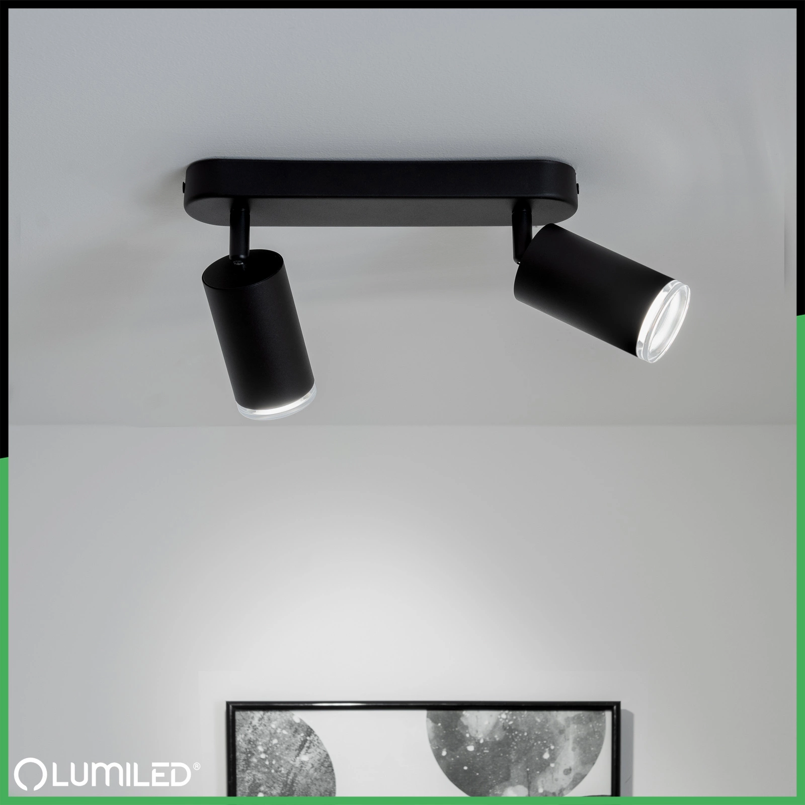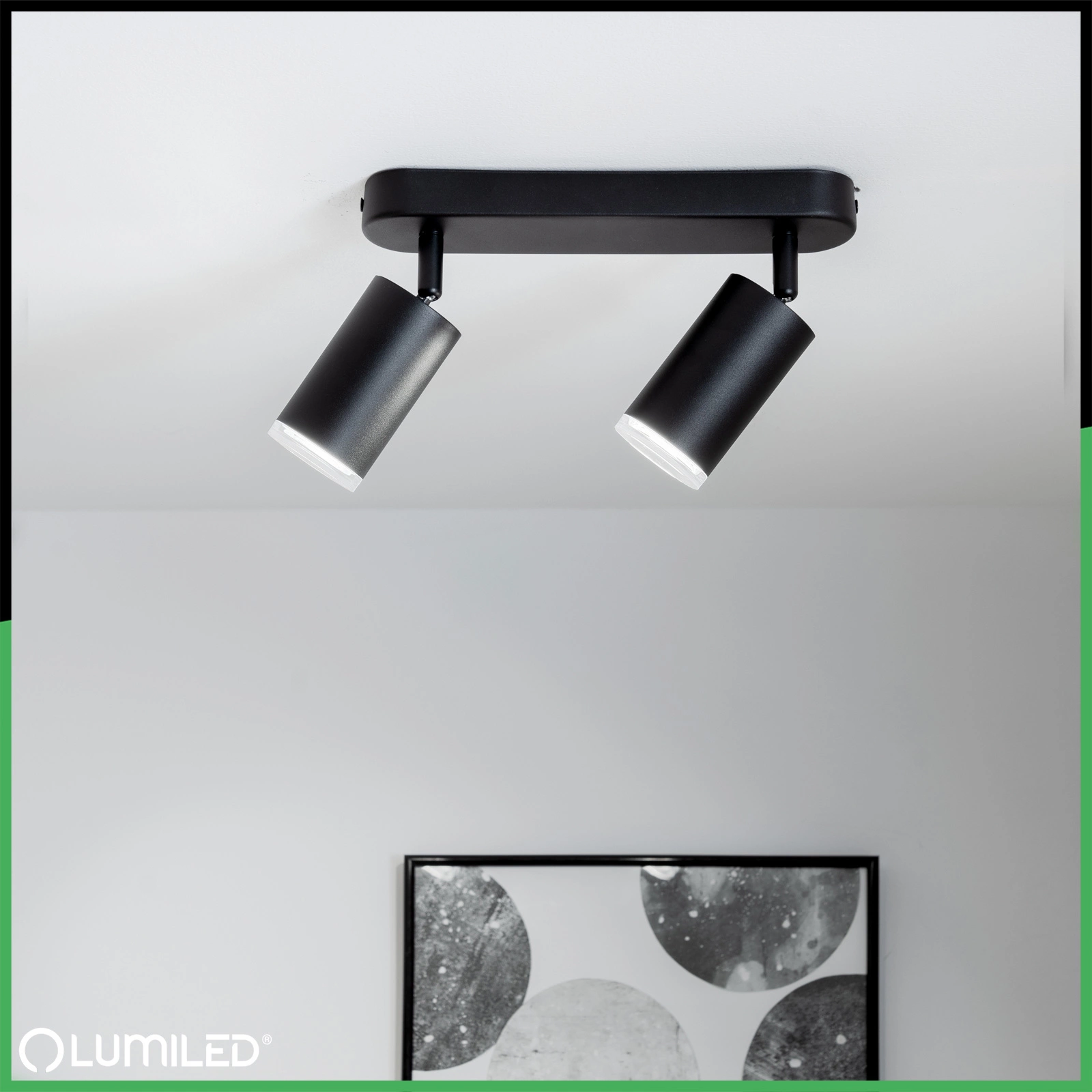 Lampe mit 2 LED-Strahlern aus der ADERO-Serie von Lumiled in Schwarz mit einem GU10-Schraubsockel ist die perfekte Kombination aus modernem Design und effizienter Lichttechnik. Durch sein minimalistisches Design passt er in viele Einrichtungen, sowohl in privaten als auch in gewerblichen Räumen. Er ist aus hochwertigen Materialien gefertigt, die seine Haltbarkeit und sein elegantes Aussehen gewährleisten. Der schwarze Strahler aus robustem Metall sieht nicht nur gut aus in Ihrem Zuhause, sondern ist auch widerstandsfähig gegen mechanische Beschädigungen, was eine lange Lebensdauer garantiert. Ihr schlichtes, aber stilvolles Design macht die die Leuchte fügt sich perfekt in viele Einrichtungsstile ein, von modern bis klassisch. Der Vorteil der Leuchte ist die Möglichkeit, jede beliebige Glühbirne mit einem GU10-Gewinde bis zu 12W zu montieren.