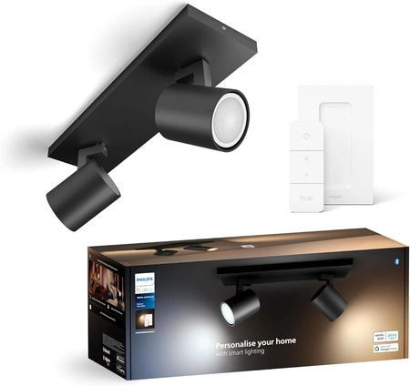 Spotlight HUE LED-Läufer in der Beleuchtungsindustrie bekannt und respektiert Philips. Moderner Strahler ausgestattet mit zwei beweglichen LED-Lichtpunkten mit GU10-Sockel mit 4,2W und einem sehr effizienten Lichtstrom von 800lm. Strahlt ein angenehmes und entspannendes licht mit einstellbarer Farbtemperatur von angenehm warm über neutral bis kalt, mit denen wir für jeden Anlass die richtige Stimmung schaffen können. Dank seines eleganten Gehäuses fügt er sich perfekt in die Wohnungseinrichtung ein. Lampe HUE LED-Läufer kann unabhängig oder als Teil eines intelligenten Beleuchtungssystems durch Verbindung mit der Hue Bridge funktionieren. Einfaches Ein- und Ausschalten der Beleuchtung, Dimmen, Aufhellen und Auswahl aus vier verschiedenen Lichtszenen.