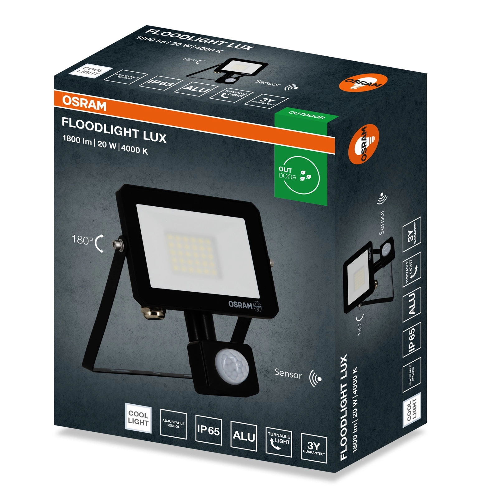 LED-Strahler Halogen-Außenstrahler 20W 4000K 1800lm IP65 mit Bewegungs- und Dämmerungssensor FLOODLIGHT LUX OSRAM