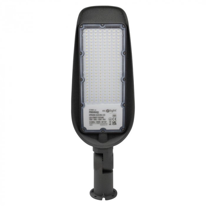 Die 150W LED-Straßenlampe ist eine äußerst effiziente Lösung für die Außenbeleuchtung. Mit einem Lichtstrom von 16500 lm und einer Lichtausbeute von 110 lm/W bietet sie eine Beleuchtung, die unter einer Vielzahl von Bedingungen funktioniert. Die Lichtfarbe von 6500K sorgt für ein kühles, klares Licht, das Straßen, Gehwege und Geschäftsräume perfekt beleuchtet. Die Installation wird durch eine Standard-Eingangsspannung von 220-240 V AC erleichtert. Die aus robustem grauem Aluminium gefertigte Leuchte garantiert Langlebigkeit und Widerstandsfähigkeit gegen raue Witterungsbedingungen, was durch die Schutzart IP65 und die mechanische Beständigkeit IK08 belegt wird.