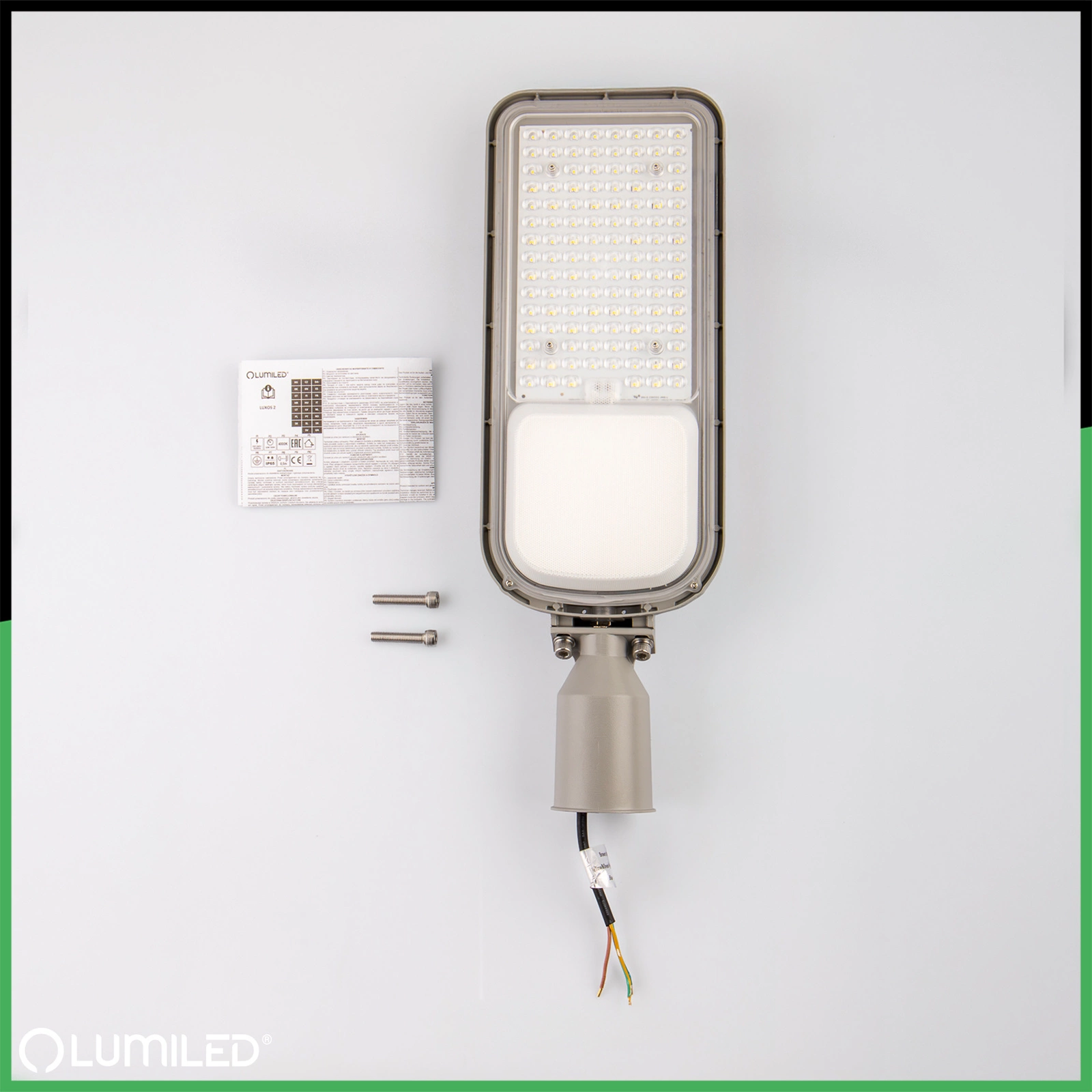 Die 100-W-LED-Straßenleuchte aus der ALS-Serie vereint Zuverlässigkeit, Funktionalität und hohe Lichtleistung. Mit bis zu 14.000 Lumen bietet sie eine hervorragende Ausleuchtung von Außenbereichen - von Straßen und Parkplätzen bis hin zu Rangierbahnhöfen und Industriegebieten. Dank des einstellbaren Neigungswinkels und der Lichtverteilung passt sich die Leuchte den individuellen Beleuchtungsbedürfnissen an.