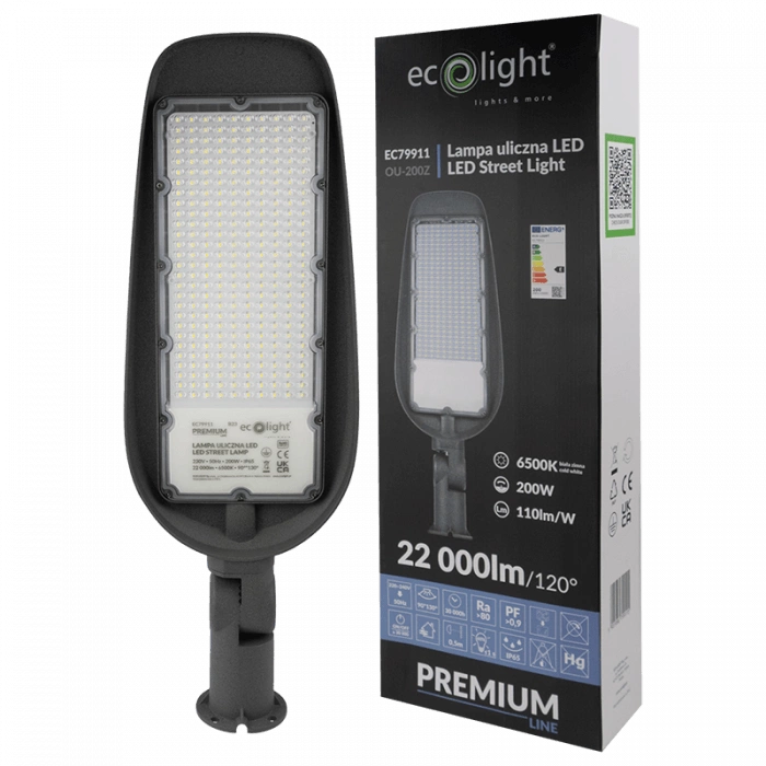 Wir möchten Ihnen eine hochwertige PREMIUM-Straßenlampe von 200W vorstellen, die die perfekte Lösung für die Beleuchtung von Außenbereichen ist. Mit einer Lichtstromerzeugung von 22000lm und einer Lichtausbeute von 110lm/W bietet das Produkt helles und klares Licht in jeder Situation. Die Lampe wird mit einer Standard-Wechselstromversorgung von 220-240 V betrieben, was die Installation erheblich erleichtert. Die hohe Schutzart IP65 und der mechanische Schutzgrad IK08 garantieren Widerstandsfähigkeit gegen raue Wetterbedingungen und mögliche mechanische Beschädigungen. Dank der Verwendung moderner LEDs vom Typ SMD zeichnet sich die Leuchte durch eine lange Lebensdauer von bis zu 20000 Stunden aus.