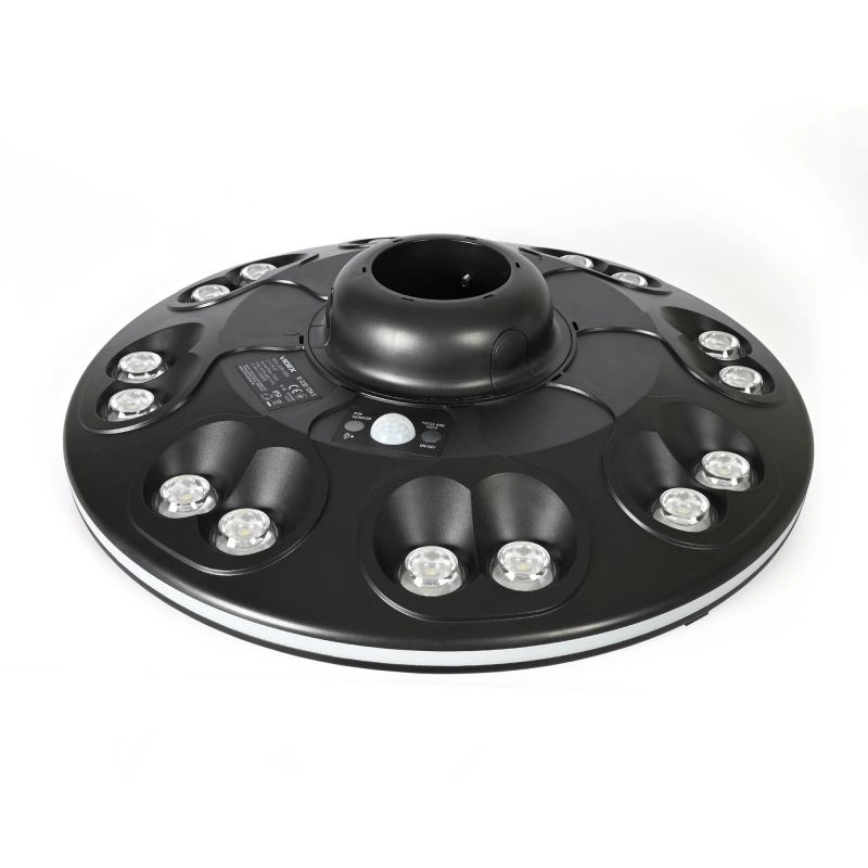 Das Gerät wird von einem 12000-mAh-Lithium-Eisen-Phosphat-Akku betrieben, der bei vollständiger Aufladung in nur sechs Stunden bis zu 14 Stunden Dauerbetrieb ermöglicht. Die Leuchte verfügt über einen hohen Grad an Witterungsbeständigkeit(IP54), was ihre Zuverlässigkeit unter rauen Wetterbedingungen garantiert. Mit einem Lichtverteilungswinkel von 360° leuchtet die Lampe jeden Winkel des bewirtschafteten Raums perfekt aus.