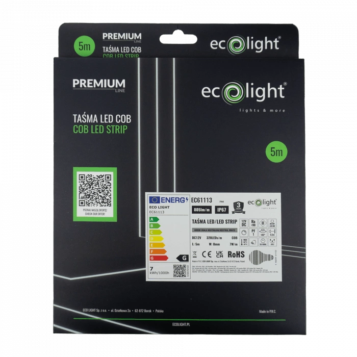 Sie ist energieeffizient und verbraucht nur 7 W/m, was sich in niedrigeren Stromrechnungen bei gleichzeitig hervorragender Lichtqualität niederschlägt. Der hohe Farbwiedergabeindex CRI ≥90 garantiert eine natürliche Farbwiedergabe, die in vielen Anwendungsbereichen entscheidend ist. Unser Band ist auch mit Dimmern kompatibel, so dass Sie die Helligkeit Ihren Bedürfnissen entsprechend einstellen können. Dank der kompakten Breite des Produkts lässt es sich außerdem leicht installieren und eignet sich somit auch für schwer zugängliche Bereiche. Sie wollen keine Kompromisse eingehen? Entscheiden Sie sich für ein Klebeband, das höchste Qualität und eine lange Lebensdauer bietet.