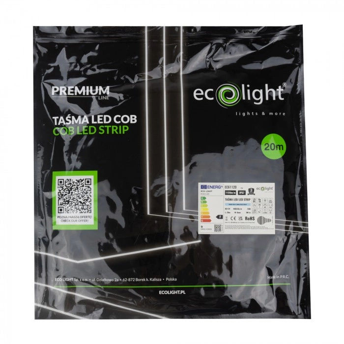Entdecken Sie ein neues Beleuchtungsniveau mit dem Ecolight LED-Band, das eine attraktive Kombination aus Leistung und Ästhetik bietet. Mit einer Leistung von 9W/m und einem Lichtstrom von bis zu 1125lm/m garantiert unser Band ein intensives und helles Licht, das ideal für jeden Raum ist. Die Verwendung von COB-LEDs führt zu einer gleichmäßigen, ästhetisch ansprechenden Beleuchtung, die sowohl im Innen- als auch im Außenbereich erfolgreich eingesetzt werden kann. Die Verwendung von Polyvinylchlorid (PVC) gewährleistet eine lange Lebensdauer und Haltbarkeit.